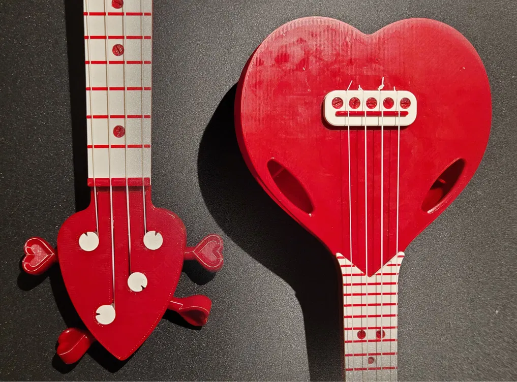 Tự tay in đàn ukulele hình trái tim độc đáo, không cần keo, không cần phụ kiện, chỉ cần dây đàn là đủ. Thiết kế thông minh, lắp ráp dễ dàng, hoàn hảo cho ngày Valentine.