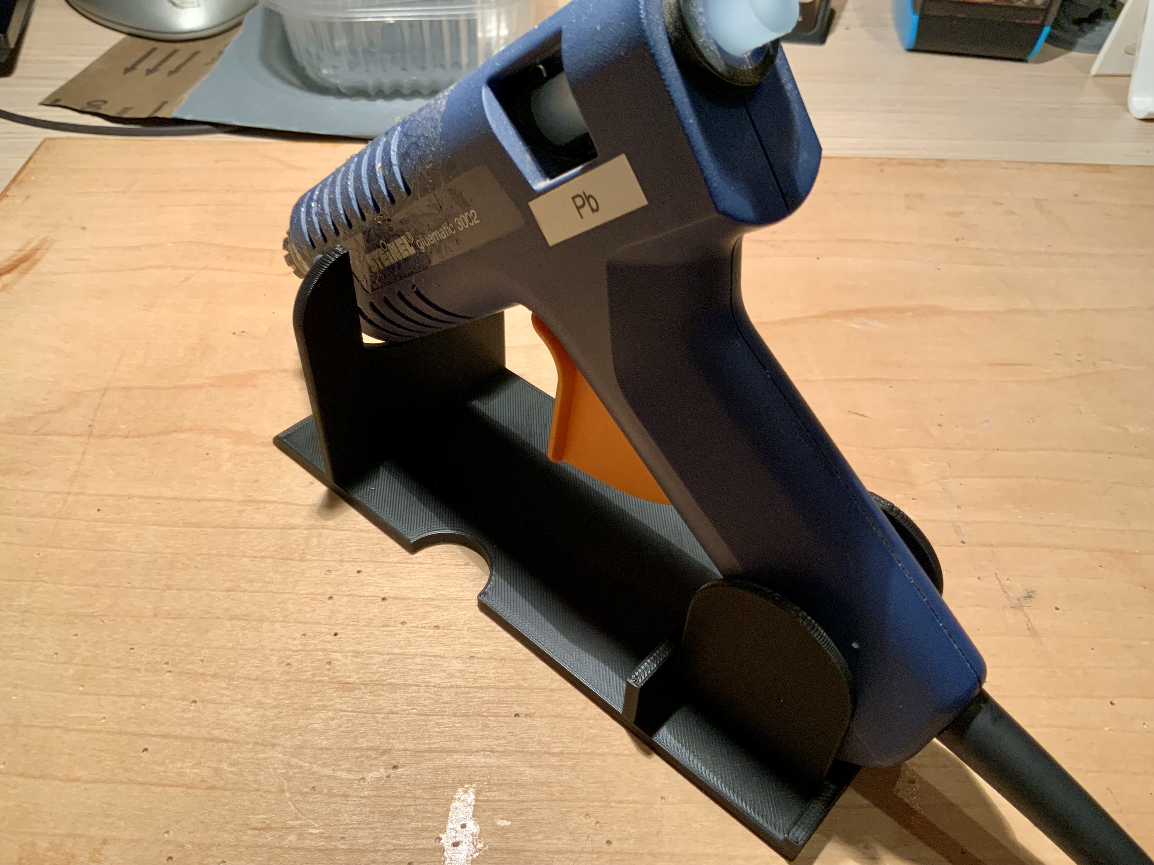 Giá đỡ và trạm an toàn cho súng bắn keo nóng của bạn. Thiết kế lại vào tháng 02/2024. Món đồ này rất hữu ích cho các dự án DIY, mô hình đường sắt và các hoạt động thủ công khác. In với độ dày lớp 0.3 cho độ bền cao.