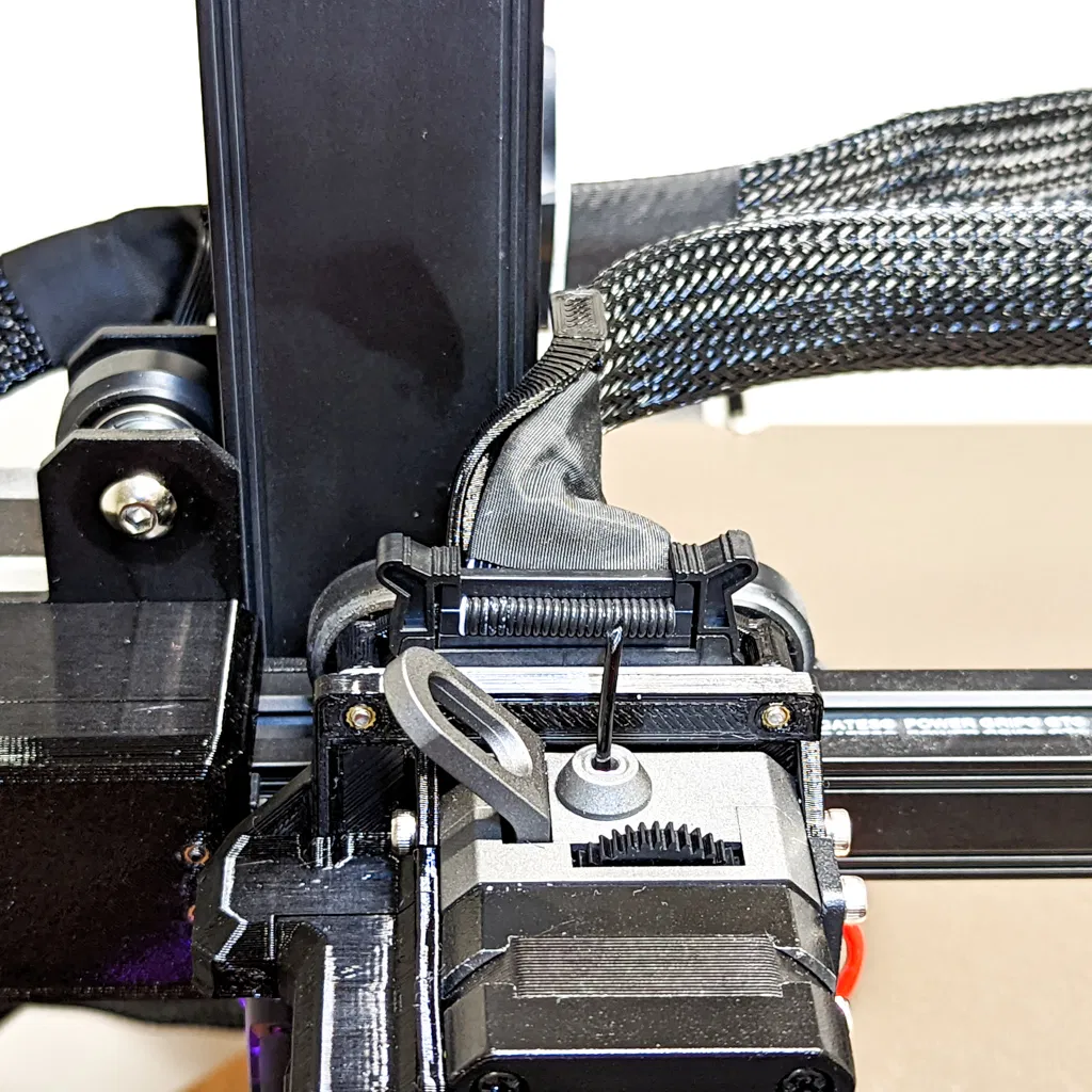 Việc lắp đế giữ cáp cho máy in của bạn cho phép cáp ruy băng uốn cong nhẹ nhàng theo chiều dài của nó thay vì chỉ tập trung tại một điểm, giúp ngăn cáp bị hỏng theo thời gian - đây là một vấn đề thường gặp với cáp ruy băng của extruder Sprite.