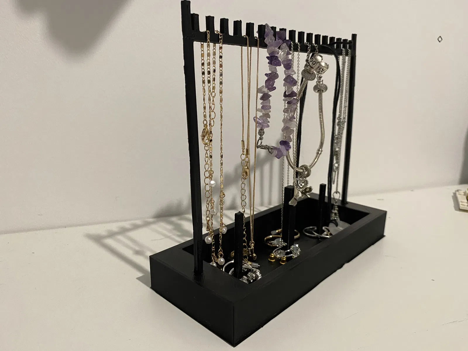 Cái kệ trang sức low poly này in dễ lắm luôn, xài để treo mọi loại trang sức từ bông tai, nhẫn tới dây chuyền đều được hết.