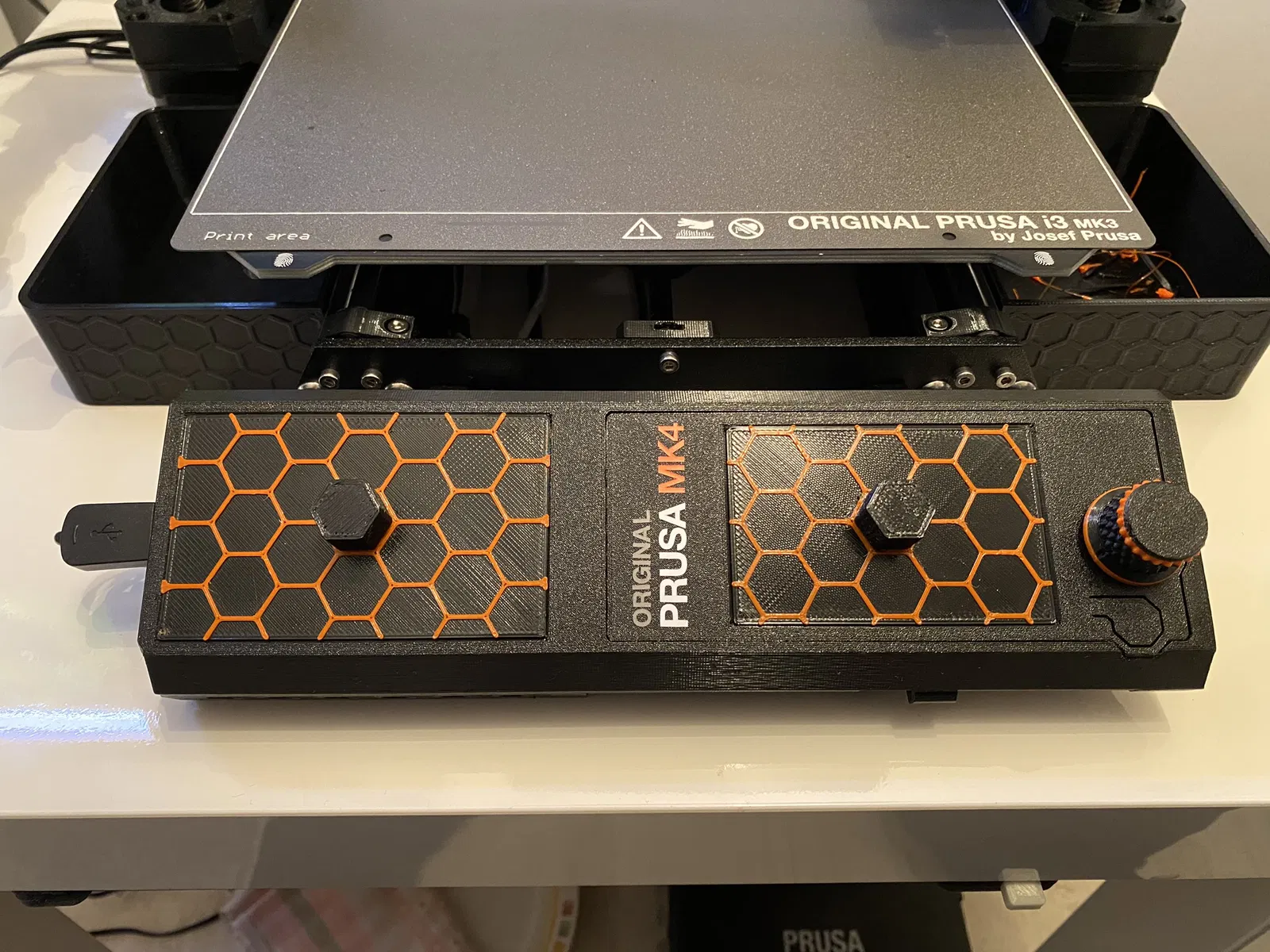 Mẫu vỏ che cho case trước với màn hình Hyperpixel 4" (và Raspberry Pi) cùng màn hình Prusa MK4.