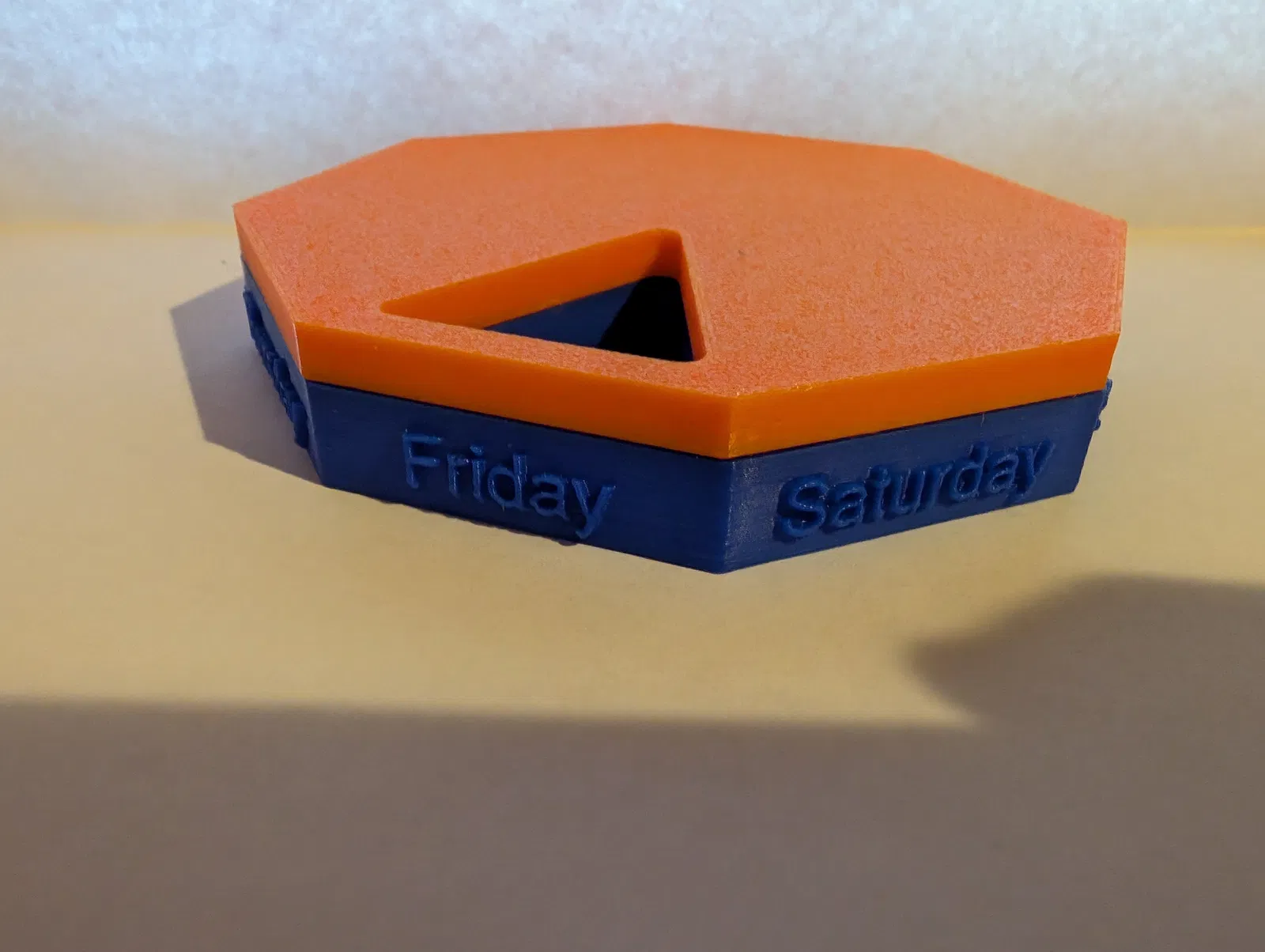 - Mỗi ngăn đều có tên ngày tương ứng được khắc nổi ở mặt trước bằng chữ dễ đọc.
