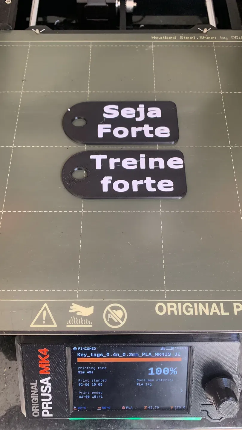 Đã thay đổi kích thước của chữ và cả mẫu in cho dễ đọc hơn và dễ in với tốc độ nhanh hơn. Mẫu in này chỉ mất 28 phút để hoàn thành với chất liệu PLA và độ dày 0.2 mm, bật input shaping.