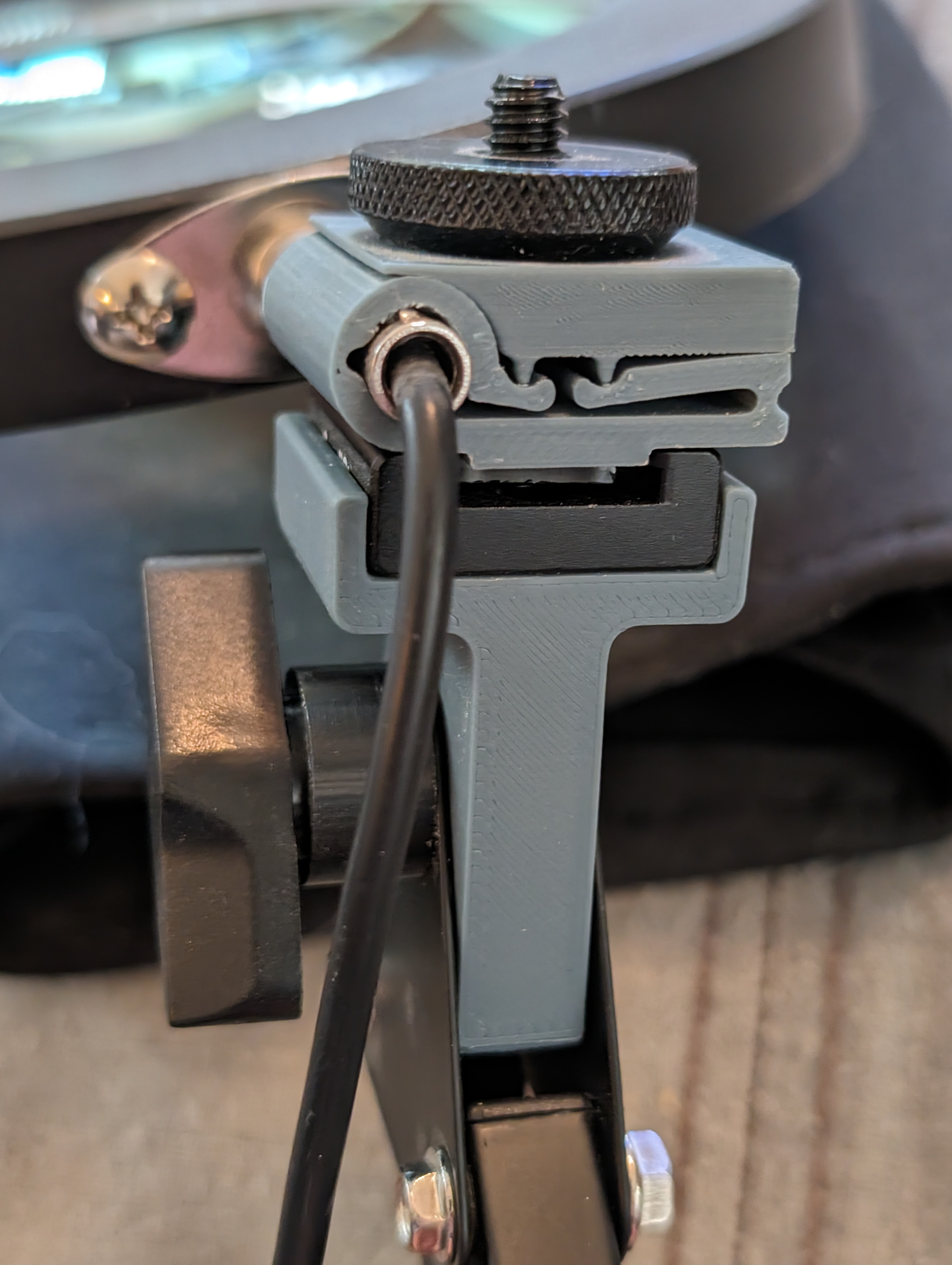 Đây là một bộ mô hình để hoán đổi đầu dụng cụ trên hầu hết các đèn bàn có khớp nối (lò xo) (ví dụ liên kết bên dưới). Điều này cho phép hoán đổi dễ dàng giữa kính lúp và máy quét 3D (v.v.) bằng cách sử dụng các ổ cắm cold-shoe tiêu chuẩn. Các tệp Fusion 360 (.f3d) được bao gồm nếu bạn cần sửa đổi để phù hợp với một mẫu cụ thể.