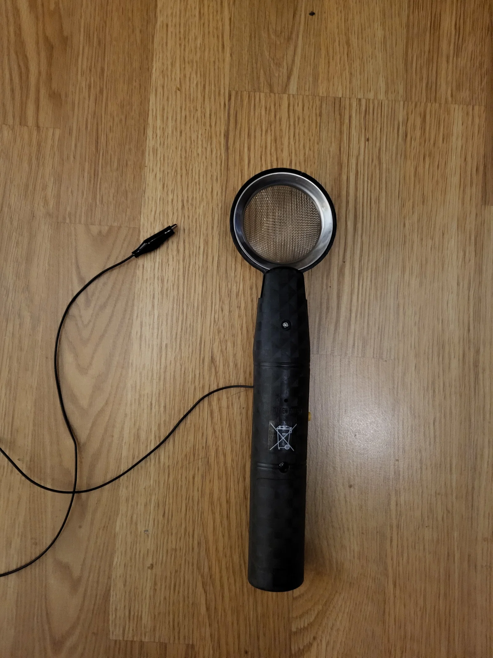 Nối cực (+) vào lưới lọc trà.