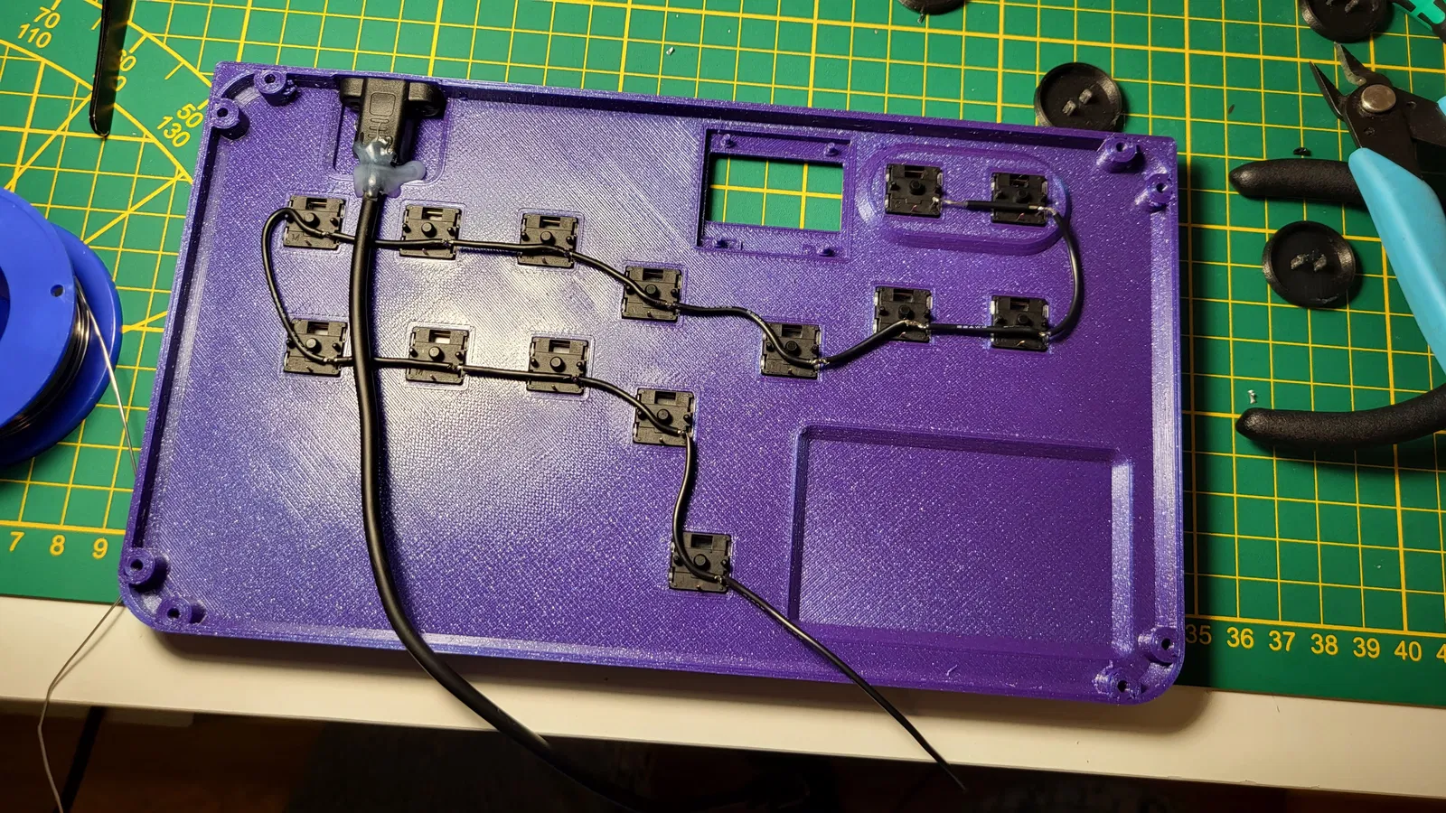 Để gắn màn hình vô vỏ, bạn chỉ cần canh thẳng màn hình rồi dùng mỏ hàn để nung chảy mấy cái ghim nhựa. Vỏ mỏng, không cần ốc vít.