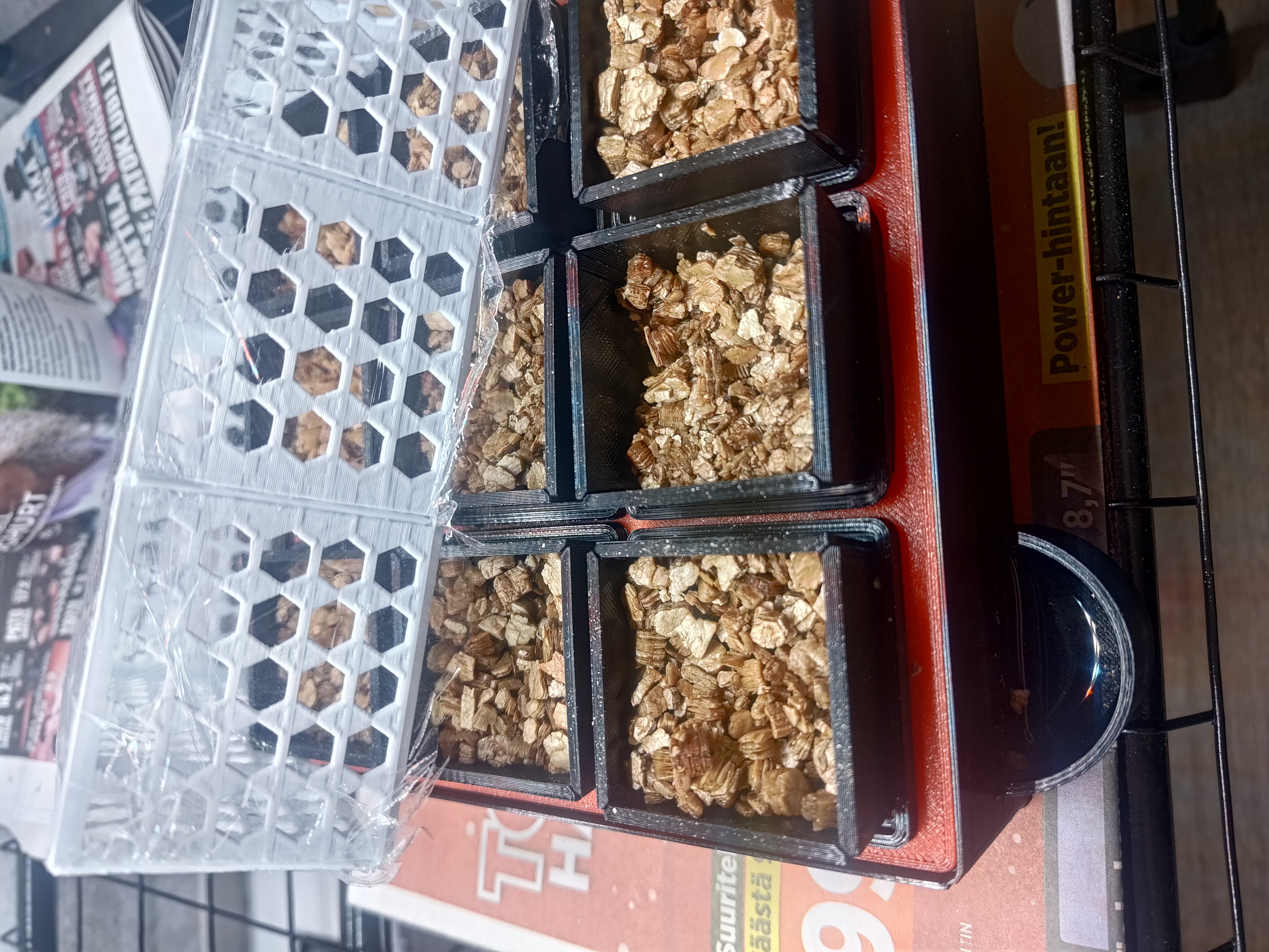 Tạo ra một "nhà kính" mini tự tưới nước cho chậu in liền, phiên bản 3x3. Thích hợp để ươm hạt giống. Bài viết mô tả quá trình thiết kế, các lần chỉnh sửa và mẹo sử dụng.