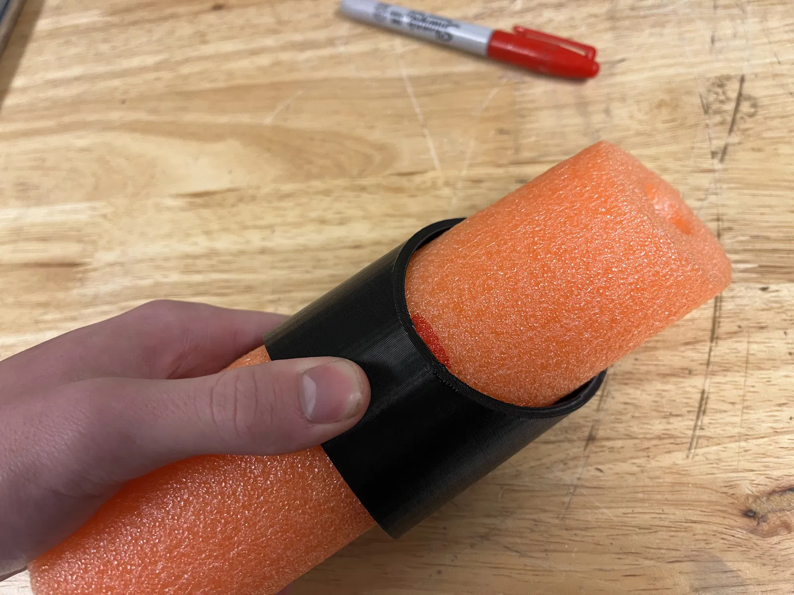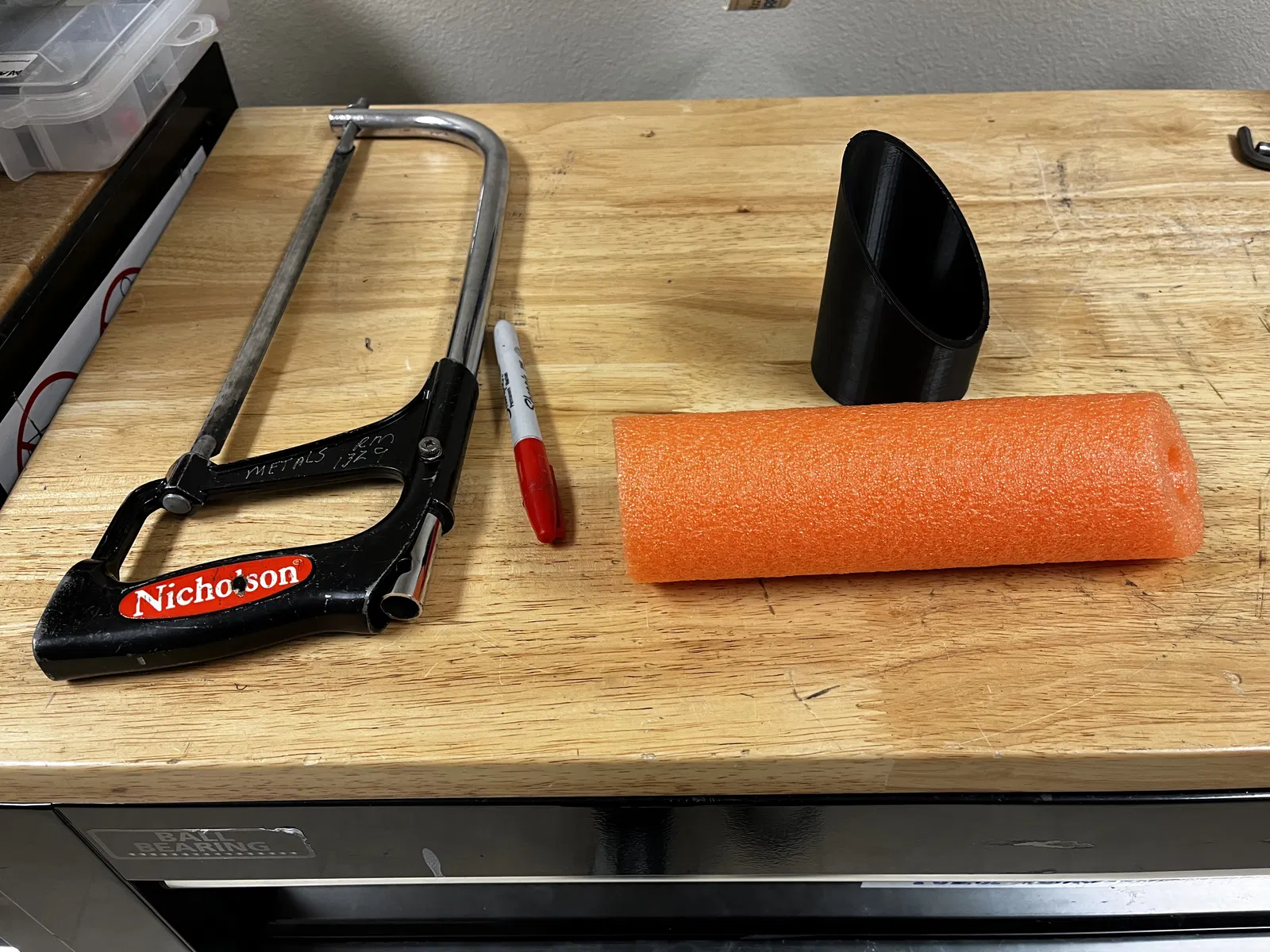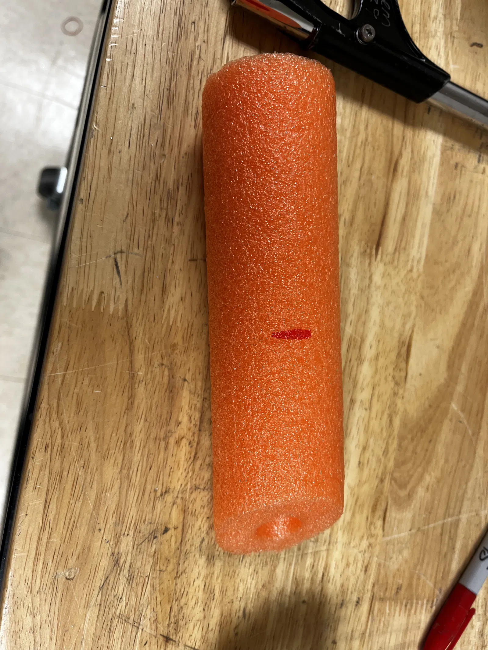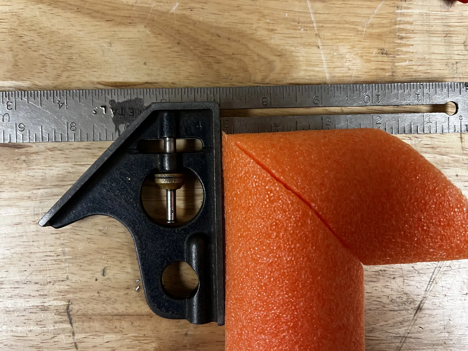 Cách sử dụng: Lấy một sợi ống bọt biển (pool noodle), đánh dấu chiều dài góc trong bạn muốn cắt (làm theo cách này đáng tin cậy hơn). Sau đó, cho ống bọt biển vào dụng cụ cắt, với dấu đánh dấu hướng về phía cạnh nhỏ nhất của dụng cụ. Tiếp theo, dùng dao hoặc dụng cụ bạn chọn (mình thấy "cưa sắt" hoặc cưa kim loại là tốt nhất) giữ ống bọt biển và dụng cụ cắt bằng một tay, tay kia dùng để cắt. Cuối cùng, bạn sẽ có được một vết cắt hoàn hảo nếu thực hiện đúng.