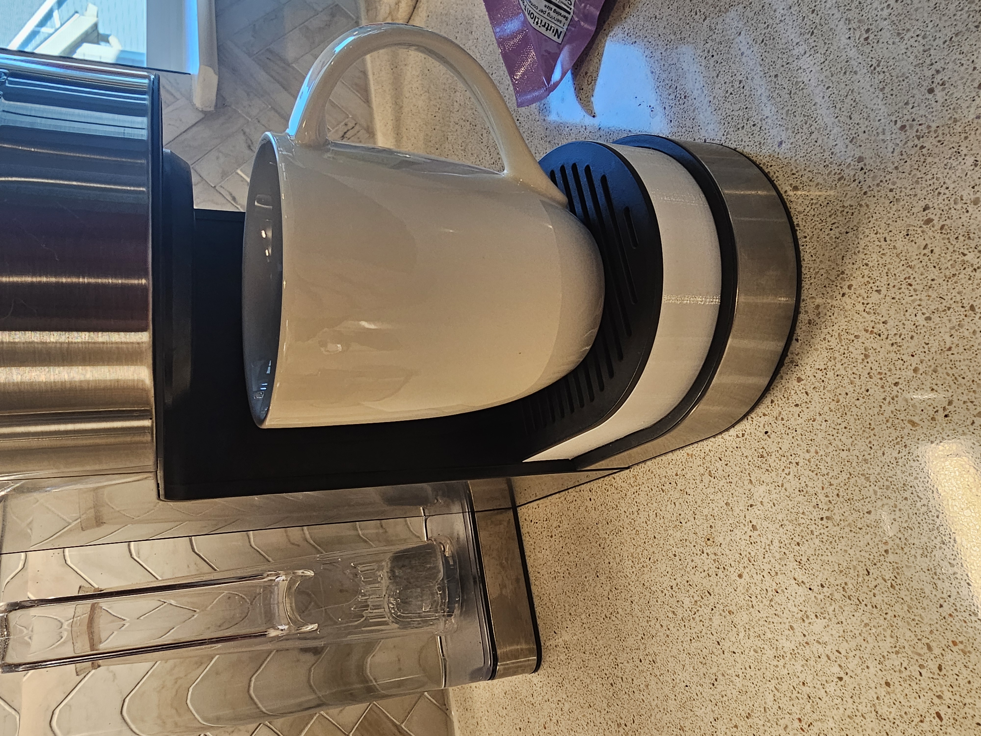 Thêm một phiên bản đế nâng khay hứng nước nhỏ giọt nữa nè. Với mấy cái ly nhỏ xíu, máy Keurig nó bắn tung tóe hết cả lên, cái này giúp hạn chế bớt. In bằng PETG, độ dày lớp cắt là 0.2mm, độ đặc ruột 5%.