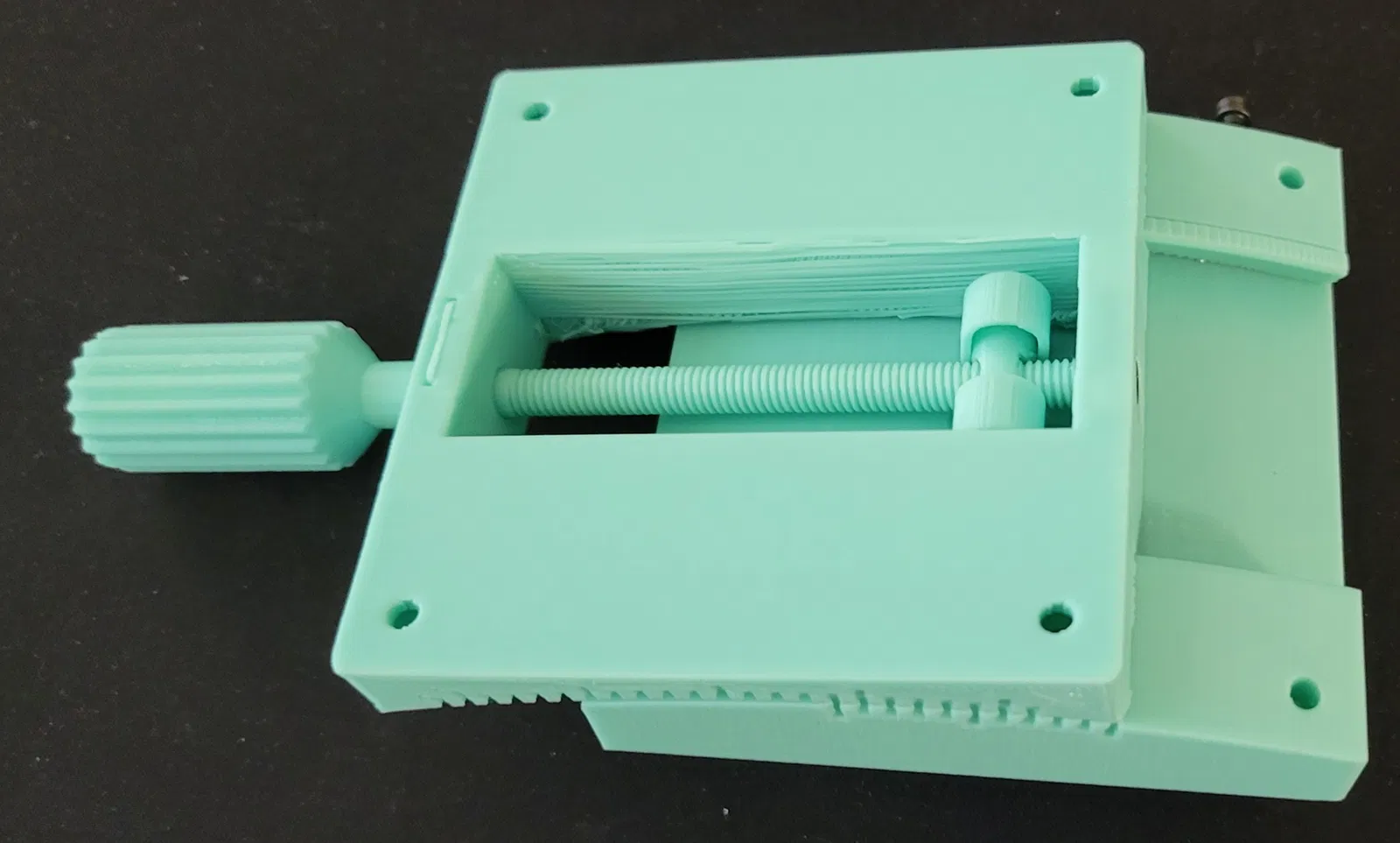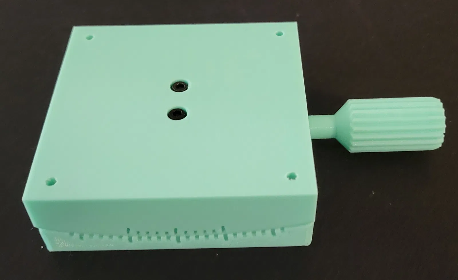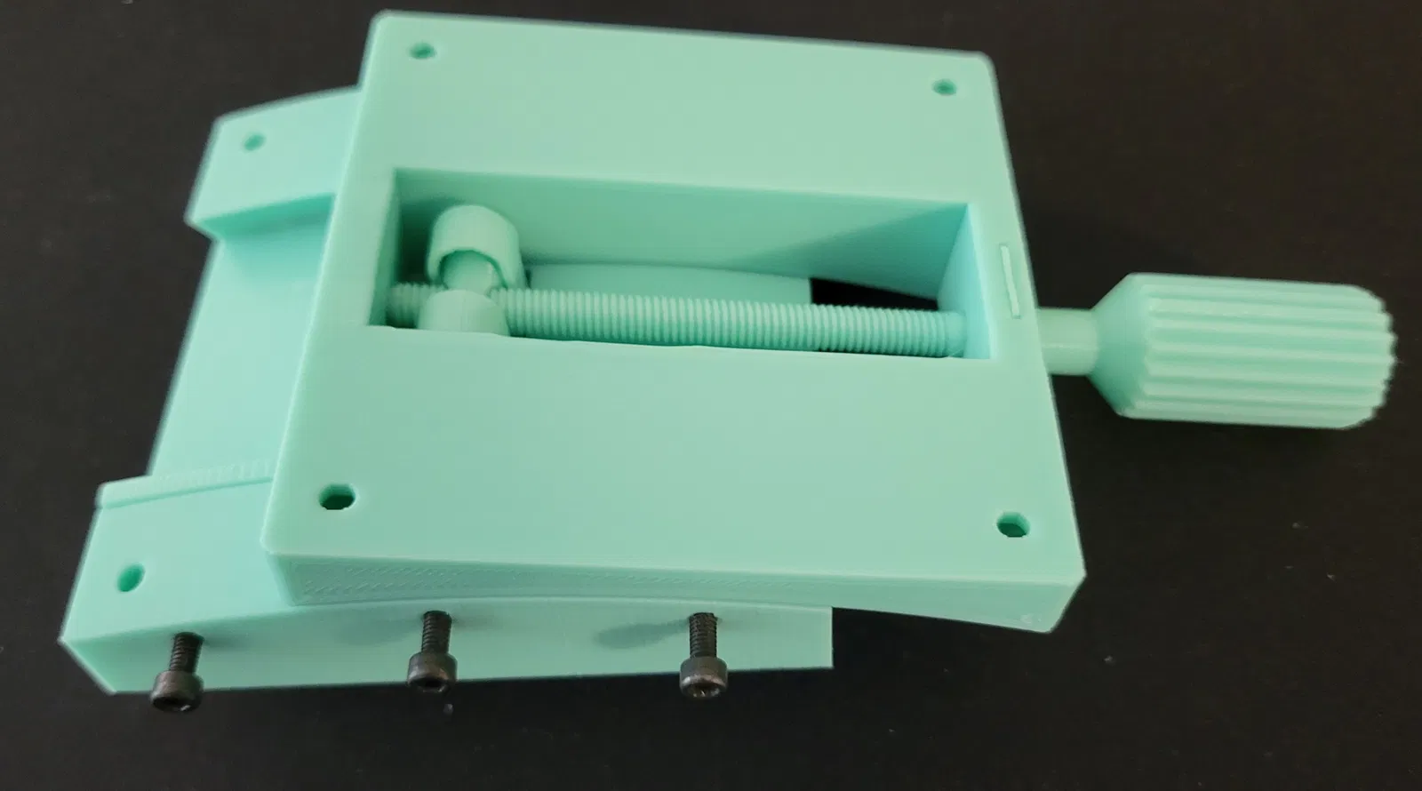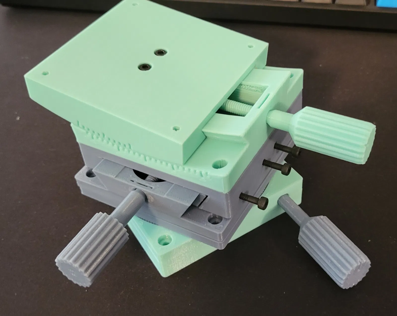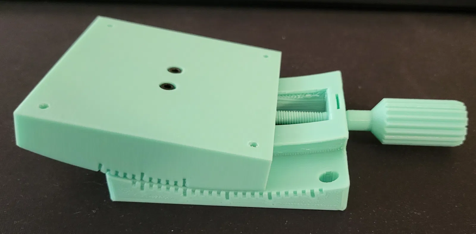 Đây là một đế góc nhỏ (80x80x25) có thể nghiêng 10 độ so với tâm theo cả hai hướng. Kích thước của nó được thiết kế để phù hợp với các đế khác mà tôi đã tải lên riêng biệt. Nó yêu cầu 2.8 vòng xoay của ốc vít để di chuyển đế 1 độ. Điều này tương tự như Đế đo góc hoặc Đế đo góc bậc độ, nhưng khoảng cách tâm quay trên đế này là khoảng 141 mm. Đế Tuyến tính Đế Quay Tấm Gắn Vấn đề In ấn: Quyết định về Đường Lằn Lớp: Các bề mặt trượt là cong và mối quan tâm chính của tôi trong việc định hướng các bộ phận để in là cách các mặt đối diện sẽ trượt trên nhau. Không in cả bộ phận Trên và Dưới theo chiều đứng. Vâng, nó sẽ trông đẹp hơn và không cần hỗ trợ, nhưng tin tôi đi, nó không đáng. Các bề mặt trượt Trên và Dưới sẽ có các đường lằn lớp song song, điều này sẽ gây khó khăn cho các bộ phận trượt qua nhau, và nó sẽ tạo ra tiếng rít khủng khiếp khi cọ xát với nhau. Giải pháp tôi đưa ra là in một cái theo chiều đứng và một cái đặt nghiêng với giá đỡ. Tôi chọn in bộ phận Trên theo chiều đứng không cần hỗ trợ và bộ phận Dưới đặt nghiêng với giá đỡ chỉ ở phần đế. Phần nhô ra không được hỗ trợ trên bộ phận Dưới sẽ bị võng, như trong ảnh, nhưng thiết kế bao gồm khoảng hở bổ sung để lớp bị võng không ảnh hưởng đến Ốc Nút Xoay. Chỉ cần cắt tỉa các sợi nhựa thừa là bạn có thể làm được. Hậu Xử Lý: Mô hình này yêu cầu một số xử lý hậu kỳ để hoạt động. Các lỗ trong mô hình có kích thước để taro ren. Tôi đã sử dụng các công cụ sau để hoàn thành mô hình: Cái Taro M6 (Lỗ 5mm Ốc Nút Xoay) Cái Taro M3 (Lỗ 2.5mm, Đai ốc, Phía trên và ở đầu Ốc vít) 2 x Ốc vít đầu chìm M3 để cố định Đai ốc vào Phía trên 1 x Ốc vít đầu chìm M3 để cố định Vòng đệm vào đầu Ốc vít 3 x Ốc vít đầu chìm M3 để điều chỉnh Thanh dẫn hướng CHỈNH SỬA: Đã tải lên tệp IPT (~52MB). Tệp IPT đơn chứa các khối rắn riêng biệt cho tất cả các bộ phận. CẢNH BÁO: Mô hình được tạo bởi một người thiết kế CAD nghiệp dư không biết tầm quan trọng của kích thước và ràng buộc trong các bản phác thảo.