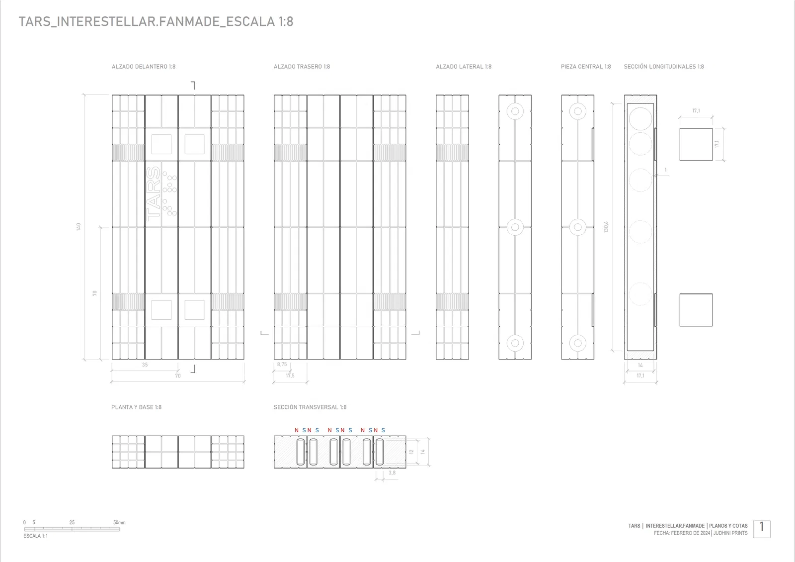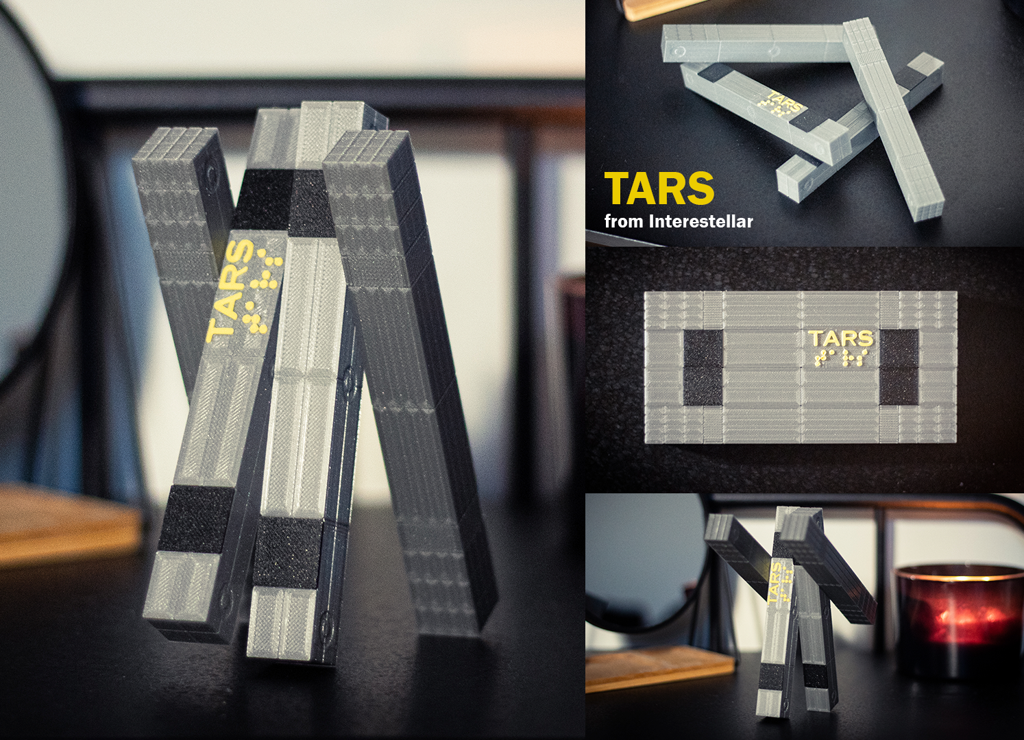 Mô hình TARS tỉ lệ 1:8 từ phim Interstellar, có chuyển động nhờ nam châm được giấu bên trong. Hướng dẫn in chi tiết, kích thước nam châm, và cách xử lý các chi tiết nhỏ.