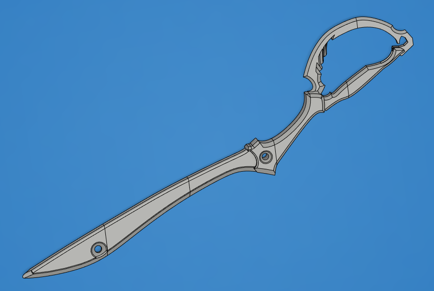 Mô hình Lưỡi Kéo từ anime Kill la Kill, dài khoảng 1 mét và được chia thành các bộ phận dễ in. Tay cầm có thể tháo rời, phần lưỡi chém đang được hoàn thiện. Thích hợp cho cosplay.