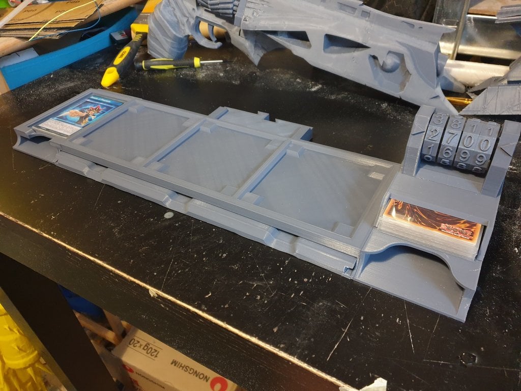 Tấm lót chơi bài Yu-Gi-Oh tốc độ. In 3D cho tấm lót chắc chắn hơn. Khu vực phép thuật/cạm bẫy trượt vào khu vực chơi chính và có chỗ cho Bộ bài, nghĩa địa, bộ bài phụ và thẻ kỹ năng. Kết nối 2 tấm để tạo khu vực sân đấu và tăng độ ổn định.