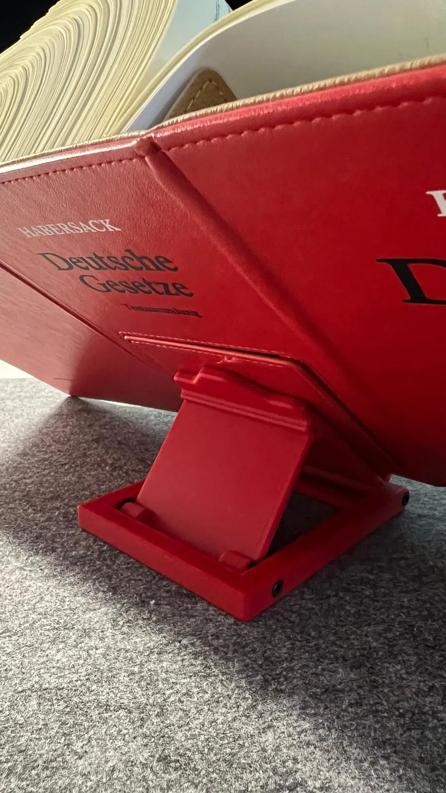 Giá đỡ sách "Buchhalter" nhỏ gọn, có thể gấp lại, được thiết kế để giữ các cuốn sách luật (Habersack, Satorius). Vật liệu cần thiết cho việc lắp ráp bao gồm 4 ốc lục giác M4x16 và 4 vòng đệm nylon M4 x 8 mm x 1 mm. Hoàn hảo cho người dùng cần một giải pháp lưu trữ sách tiện lợi.
