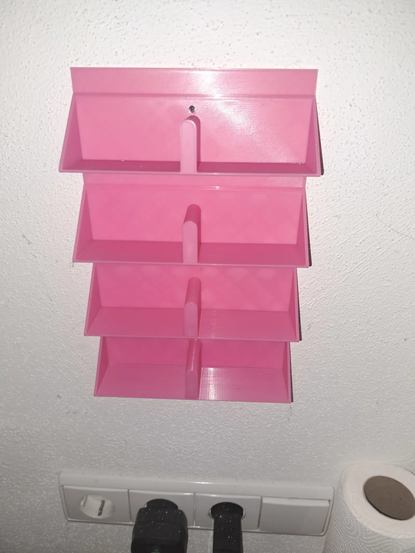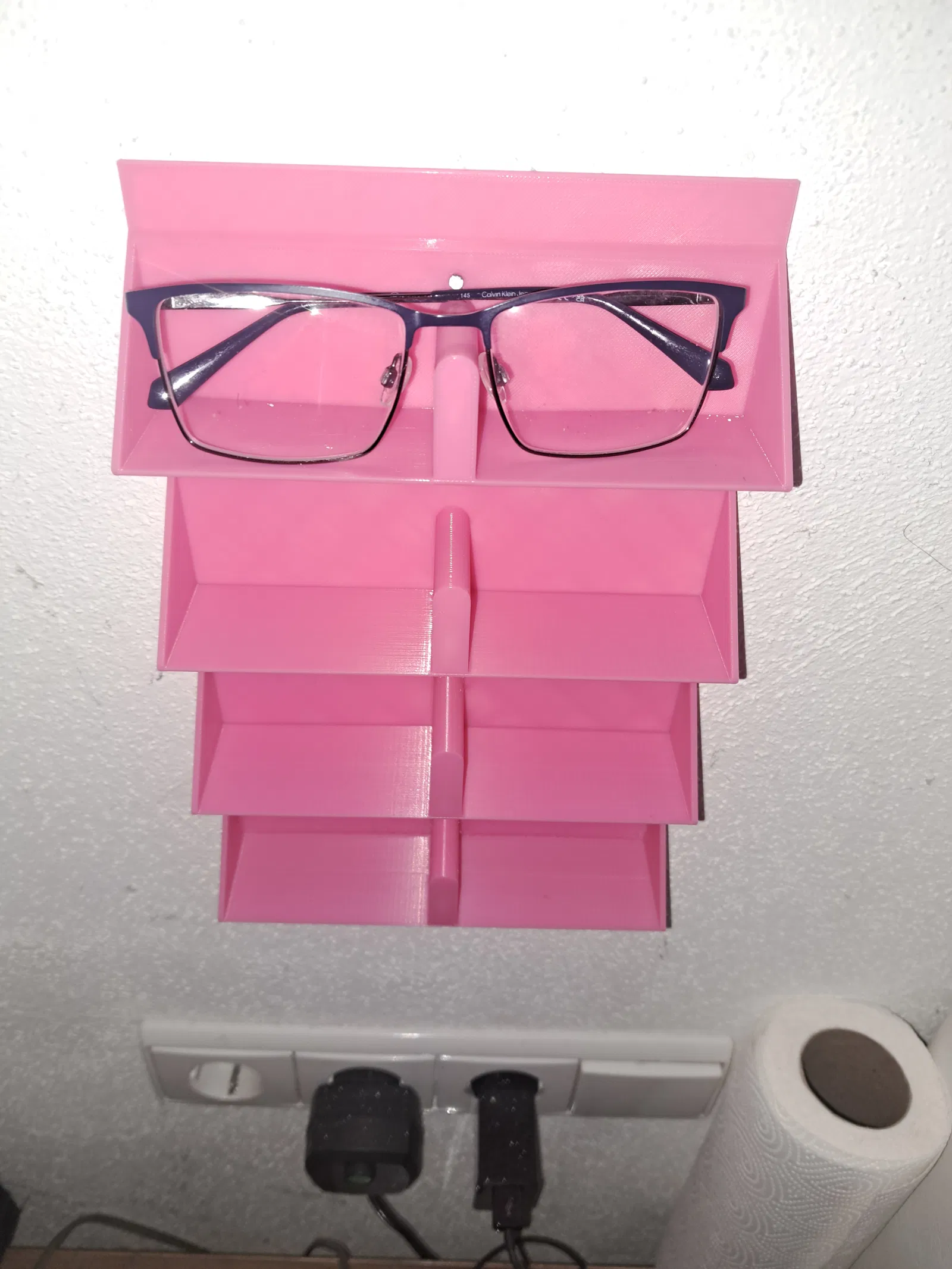 Giá đỡ kính mắt cho 4 cặp kính, tuy nhiên cần lưu ý là không phải kích cỡ nào cũng vừa. Được in bằng PLA Esun màu Hồng với độ dày lớp in 0,2.