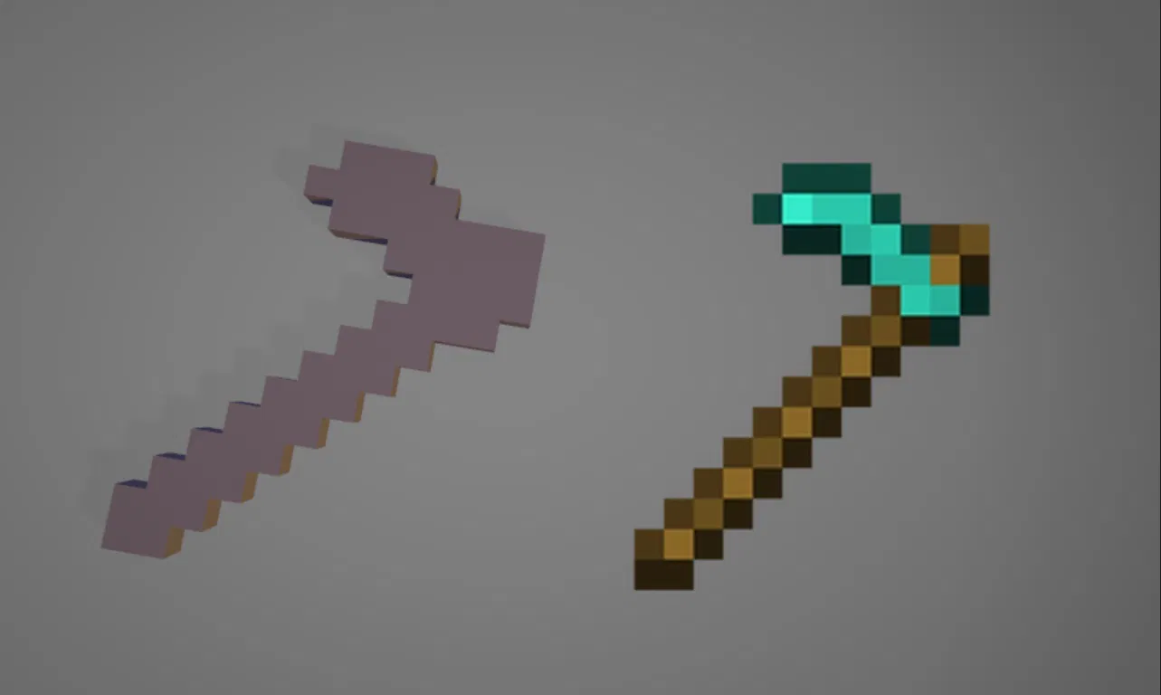 Mô hình 3D chiếc cuốc trong game Minecraft. Dùng để in 3D và trang trí.