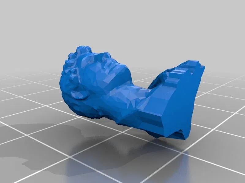 Gặp một số vấn đề với các phần nhô ra trong lần in đầu tiên - đã thêm một số hỗ trợ để khắc phục sự cố. Một vài sợi filament bị bong ra ở phần nhô ra dưới cằm, nhưng điều đó có thể là do cài đặt độ phân giải thấp khi in.