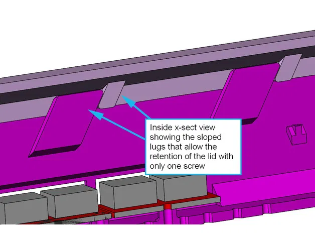 - Thay thế ốc vít trung tâm duy nhất của nắp bằng 4 ốc vít chu vi. Điều này giúp ích cho các nắp bị cong nhẹ khi lấy ra khỏi máy in do ứng suất dư bên trong phát sinh từ quá trình làm mát khác biệt trong quá trình in.