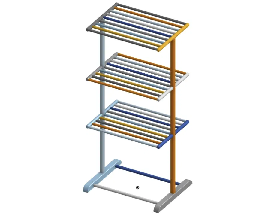 Một cái giá phơi đồ với ba tầng, rất tiện lợi để phơi khô quần áo hoặc các vật dụng khác. Thích hợp cho nhu cầu gia đình.