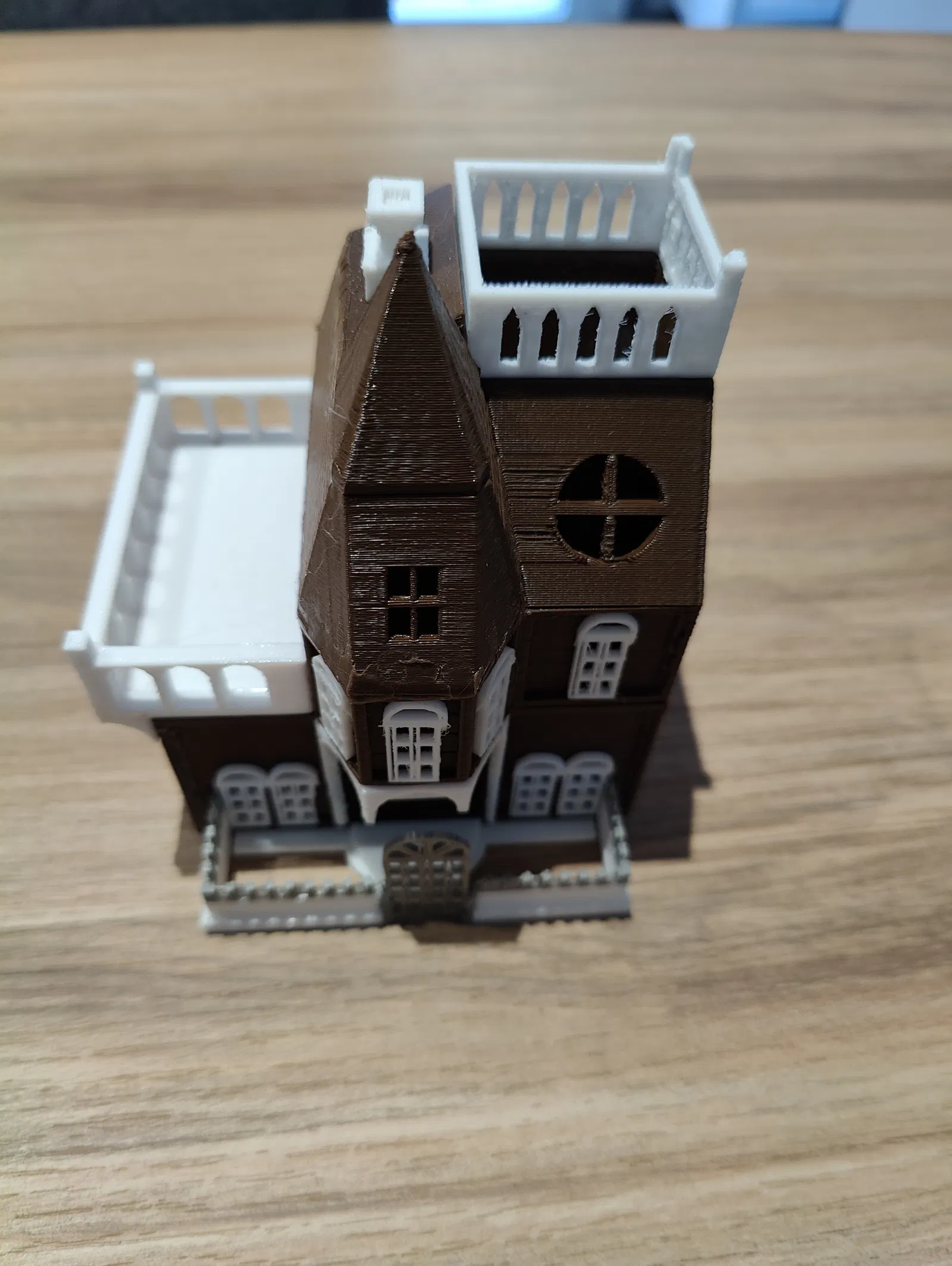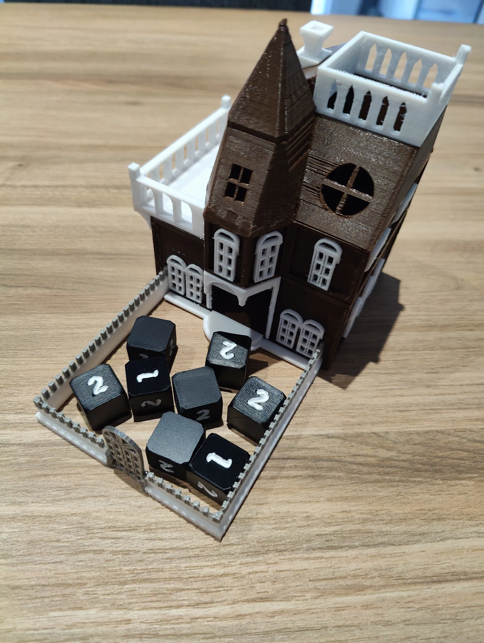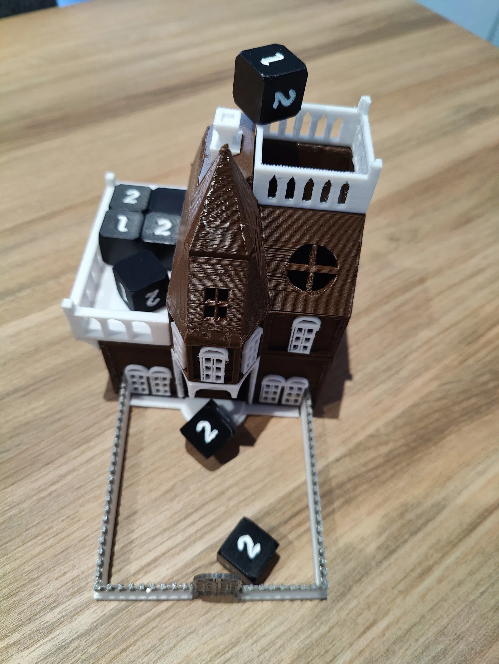 Tháp xúc xắc - Betrayal At The House On The Hill (Phản Bội Tại Ngôi Nhà Trên Đồi). Sản phẩm có hàng rào tháo rời và ban công để đặt xúc xắc. Lưu ý, một số bộ phận có thể cần dũa để lắp ráp hoàn chỉnh.