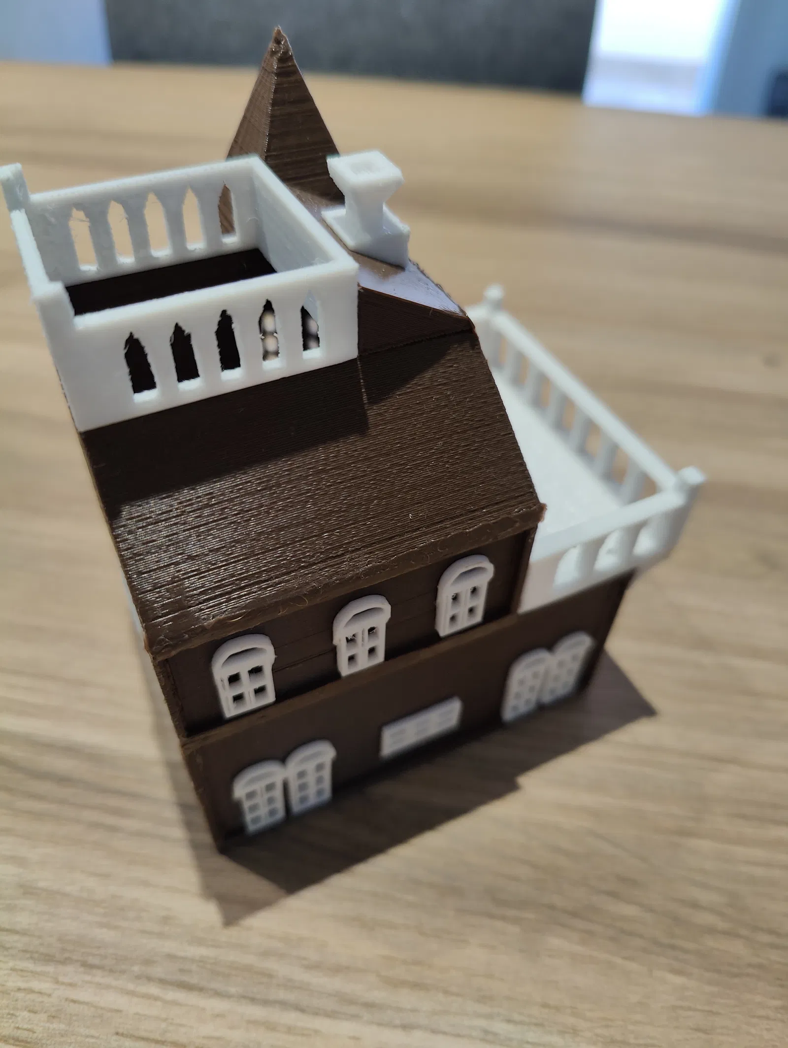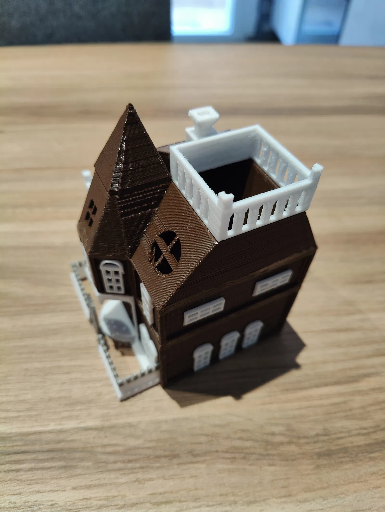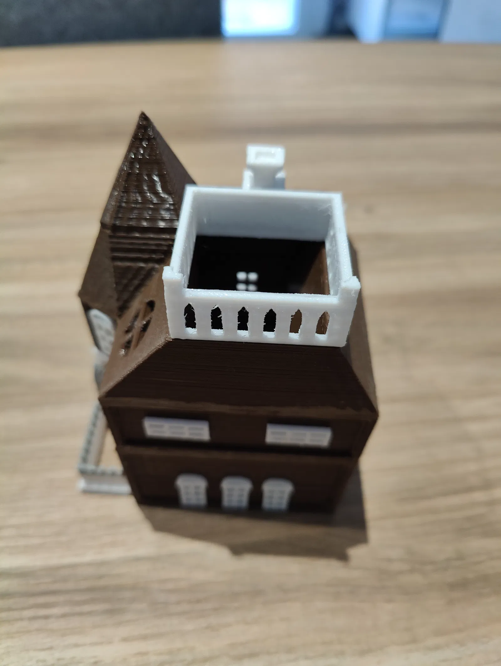 Tháp xúc xắc - Betrayal At The House On The Hill (Phản Bội Tại Ngôi Nhà Trên Đồi). Sản phẩm có hàng rào tháo rời và ban công để đặt xúc xắc. Lưu ý, một số bộ phận có thể cần dũa để lắp ráp hoàn chỉnh.