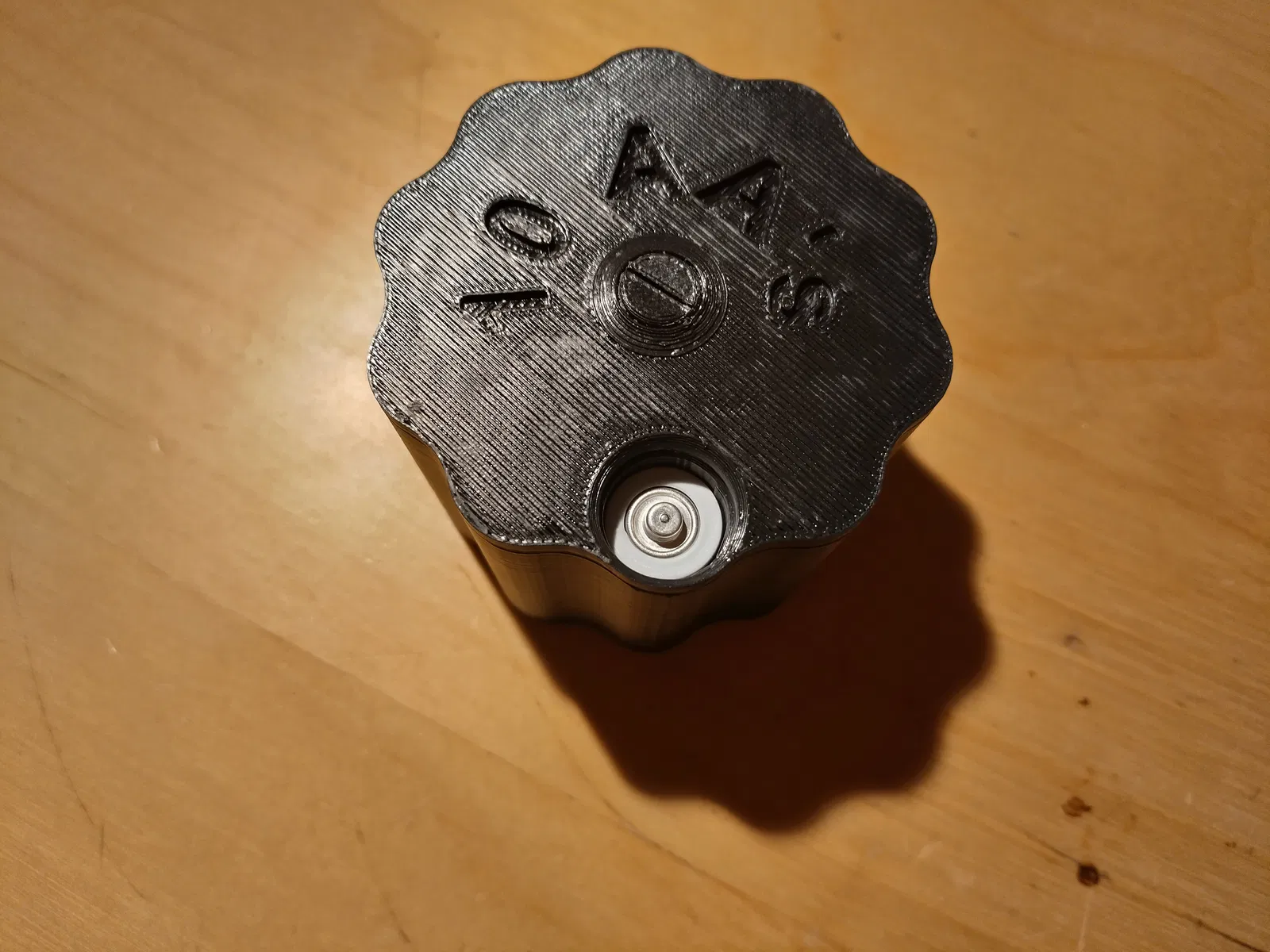 Tui muốn có một cách tốt hơn và ngầu hơn để cất pin AA. Đặc biệt là vì tụi tui xài khá nhiều pin cho mấy món đồ chơi của mấy đứa nhỏ. Nó có thể không chứa được nhiều nhất so với không gian nó chiếm dụng nhưng tui nghĩ nó trông đẹp hơn nhiều so với thiết kế hộp. Nắp đậy khá chặt và cần phải ấn mạnh một chút để đậy vào. Cũng hơi cứng lúc đầu khi xoay nhưng sẽ tốt hơn theo thời gian.