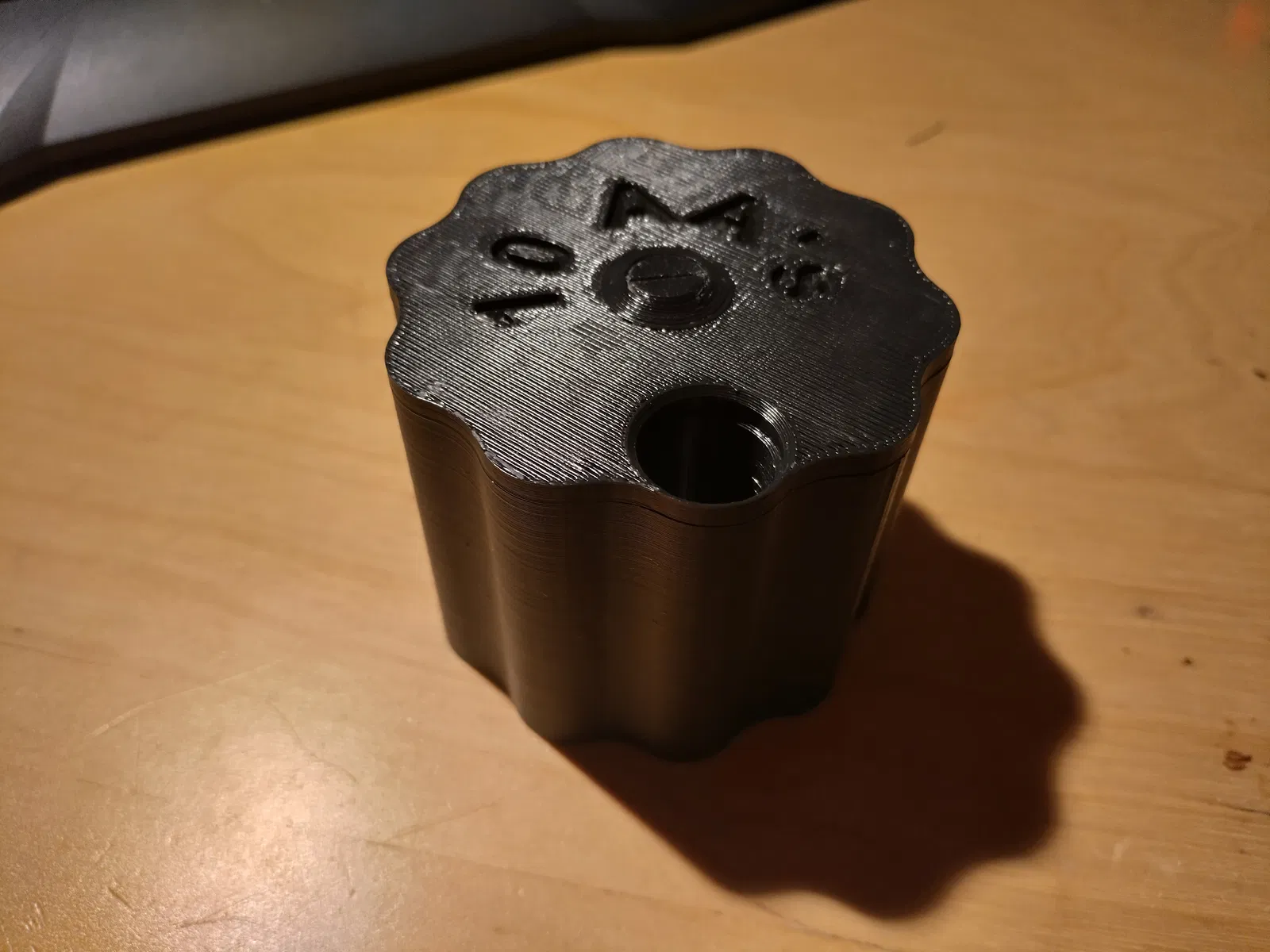 chiều cao lớp: 0.2mm Support: tắt (lỗ ở giữa phần đáy hơi xấu nếu không có support nhưng nó sẽ in khá tốt nếu quạt tản nhiệt của bạn đang bật)