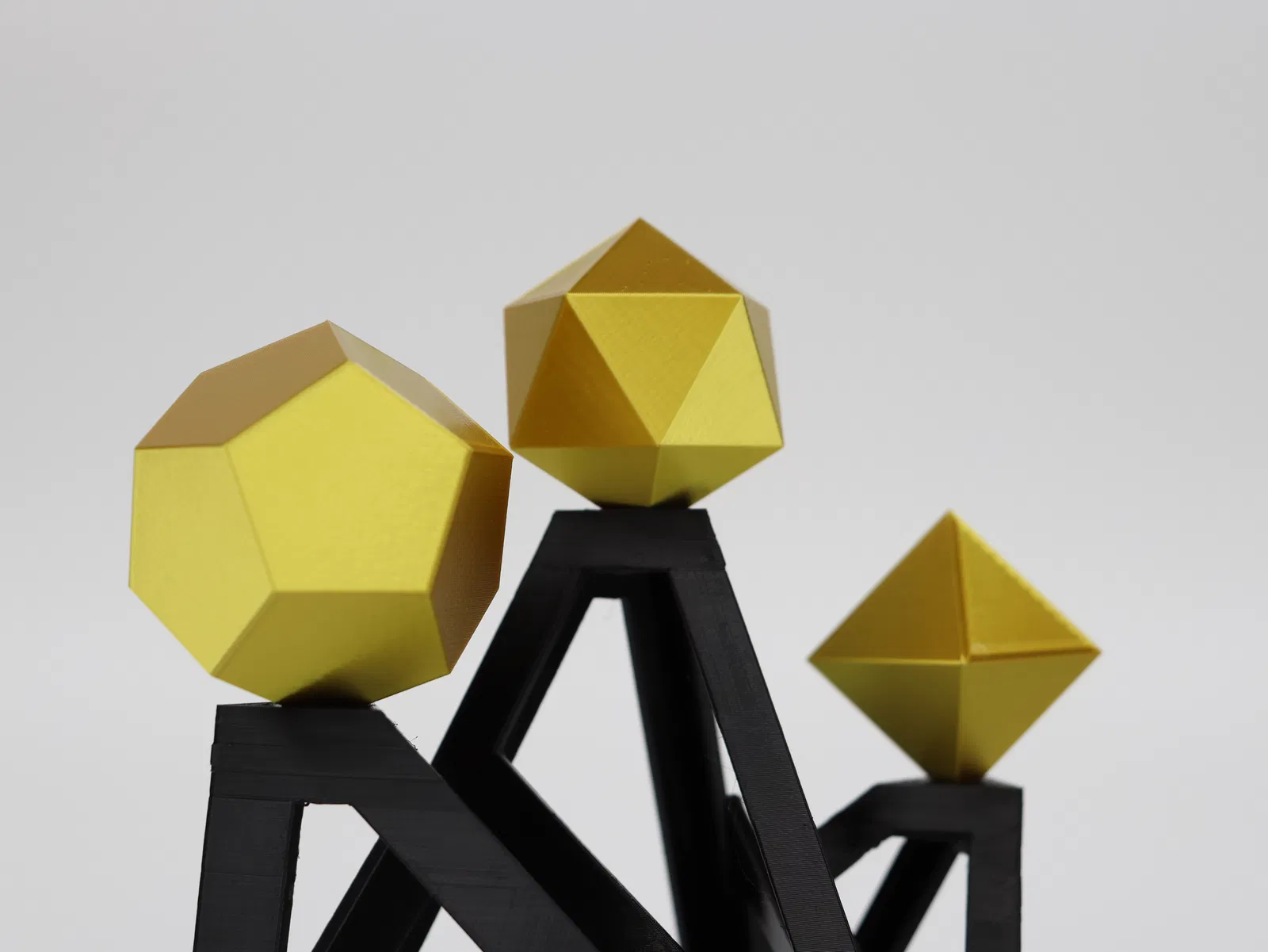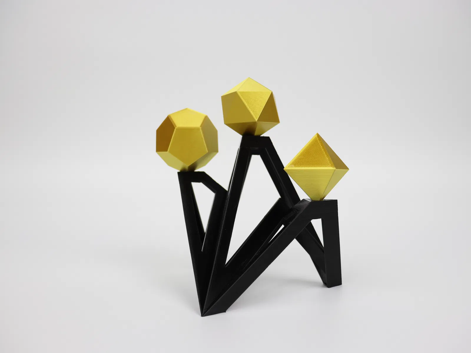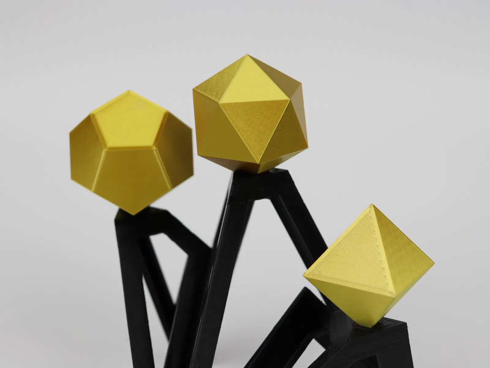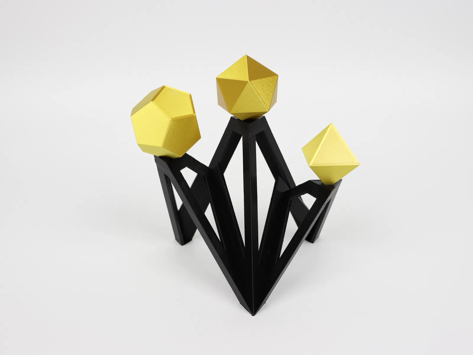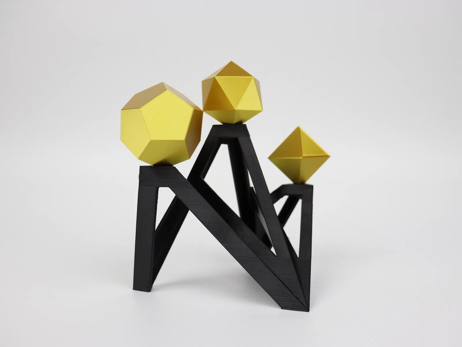 Bộ đồ trang trí hình học độc đáo gồm Bát diện thể, Mười hai mặt thể và Hai mươi mặt thể. Thích hợp để trang trí bàn làm việc, văn phòng theo phong cách tối giản, hiện đại. Quà tặng độc đáo cho người yêu hình học và in 3D.