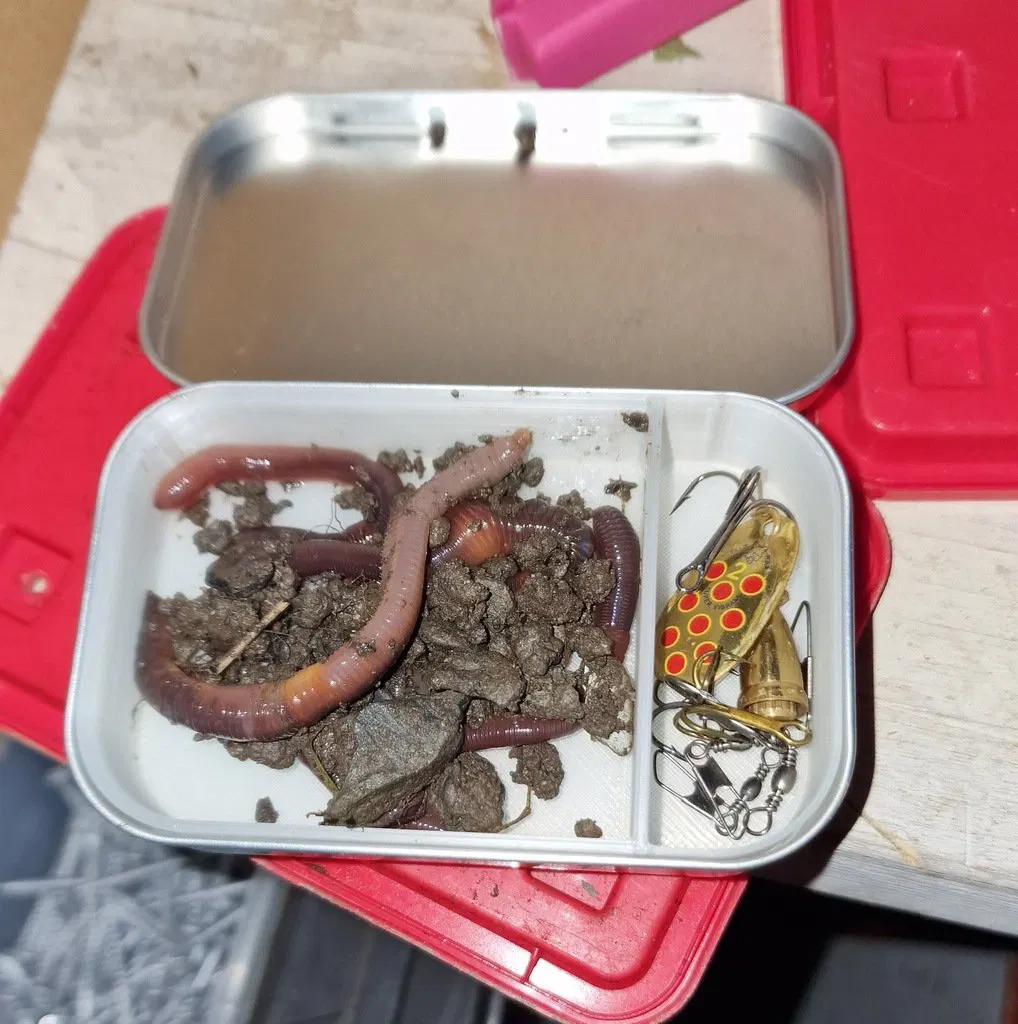 Tận dụng hộp thiếc Altoids làm hộp đựng mồi câu và mồi sống siêu gọn. Ngăn chính đủ rộng cho mồi sống, ngăn phụ đựng lưỡi câu, mồi giả. Có nắp đậy chống bẩn. Đã thử nghiệm thành công.