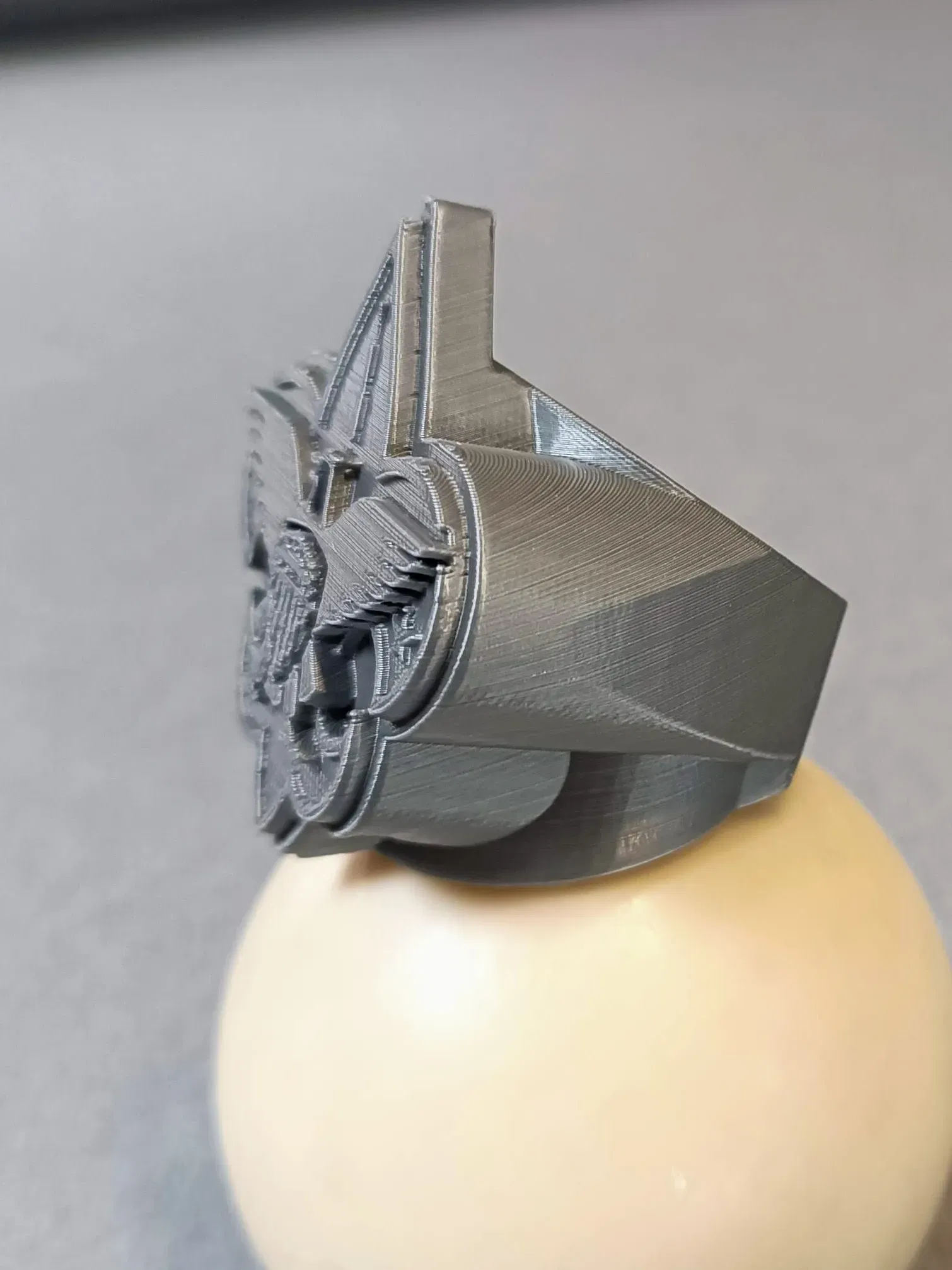 Trong bức tranh của tôi, tôi đã in với lớp 0.12 mm và vòi phun 0.4 sử dụng tiêu chuẩn Chất lượng Cao nhất trong Ultimaker eSlicer mà không cần hỗ trợ. Kiểm tra nó, trông khá đẹp.