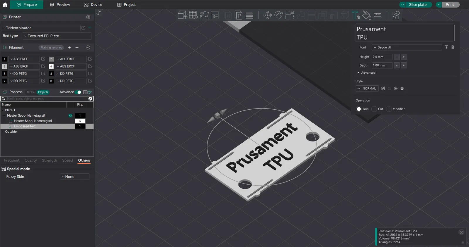 Tui bị lạc khi nạp lại chỉ nên tui đã tạo cái thẻ tên này. Bạn có thể gắn nó lên cuộn chỉ luôn, hoặc nếu bạn lấy chỉ ra thì có thể dùng dây rút để cố định. Nó được thiết kế để vừa với 1 trong 3 lỗ trên Master spool của Anachronist, là nhà sản xuất Spool tuyệt vời. Trong slicer, bạn chỉ cần thêm tên (ví dụ: Fiberlogy PETG hoặc bạn có thể gọi nó là Steve - vô vàn khả năng). Tui đã dùng MMU nhưng chỉ có 1 lần đổi vật liệu nên việc đổi thủ công rất đơn giản. Bạn cũng có thể in một màu và dùng bút để làm cho chữ nổi bật. ABS, PET-G và PLA đều đã được thử nghiệm và đều ổn. Bên dưới bạn có thể tìm thấy thiết kế hơi biến đổi một chút trên Onshape - chỉ cần chỉnh sửa các biến Spool_thickness và Hole_width (hy vọng nó sẽ hoạt động tốt): https://cad.onshape.com/documents/a3d500e308d21c8edfe408d1/w/05810f0715d57f48b21d368d/e/a3ea25a4b4ea9e2864b4495d?renderMode=0&uiState=65c20db08422c86f54fe9db8