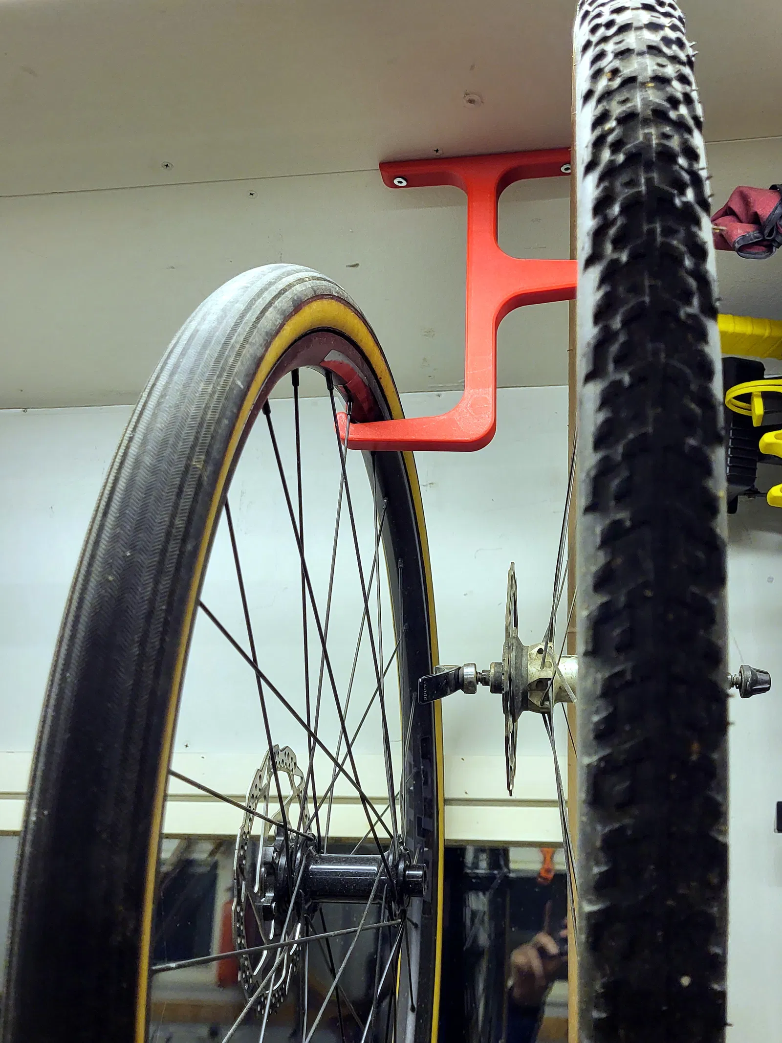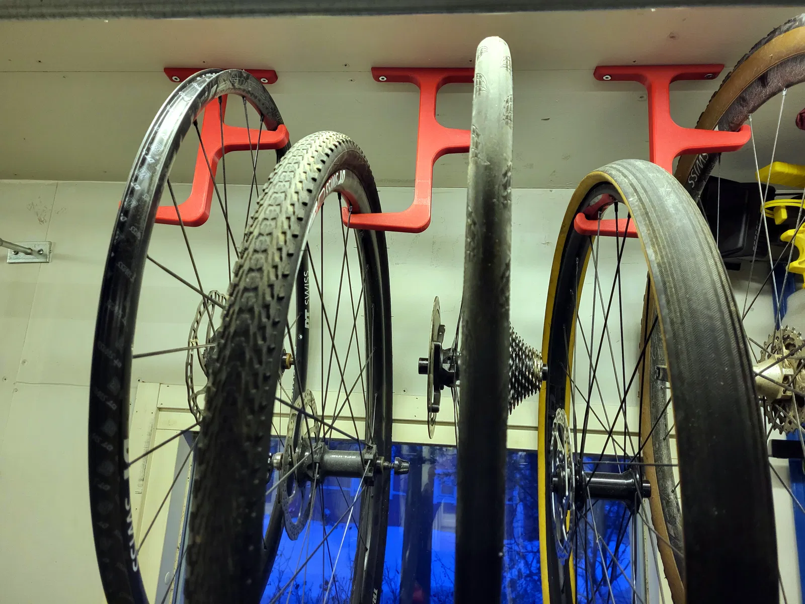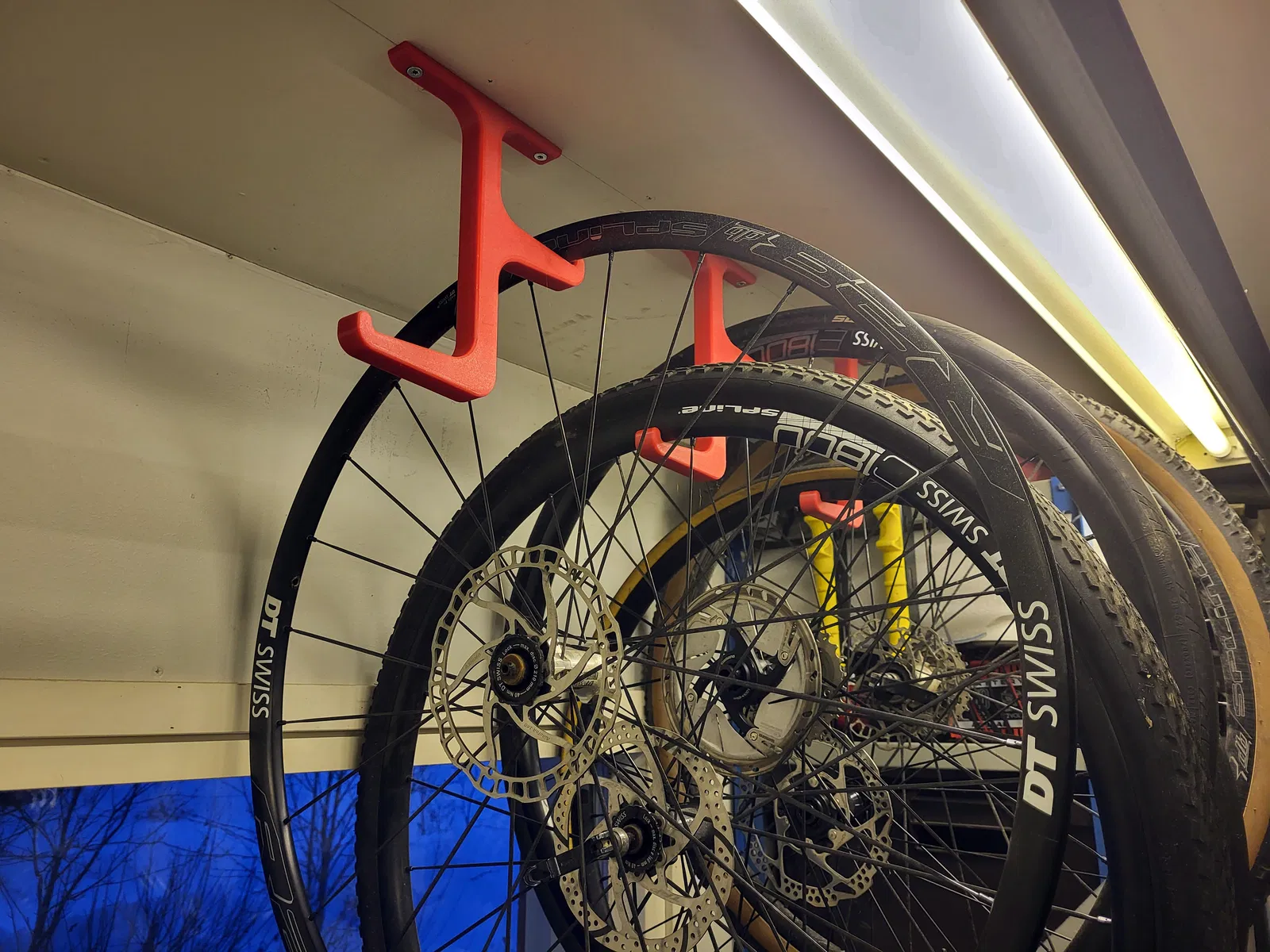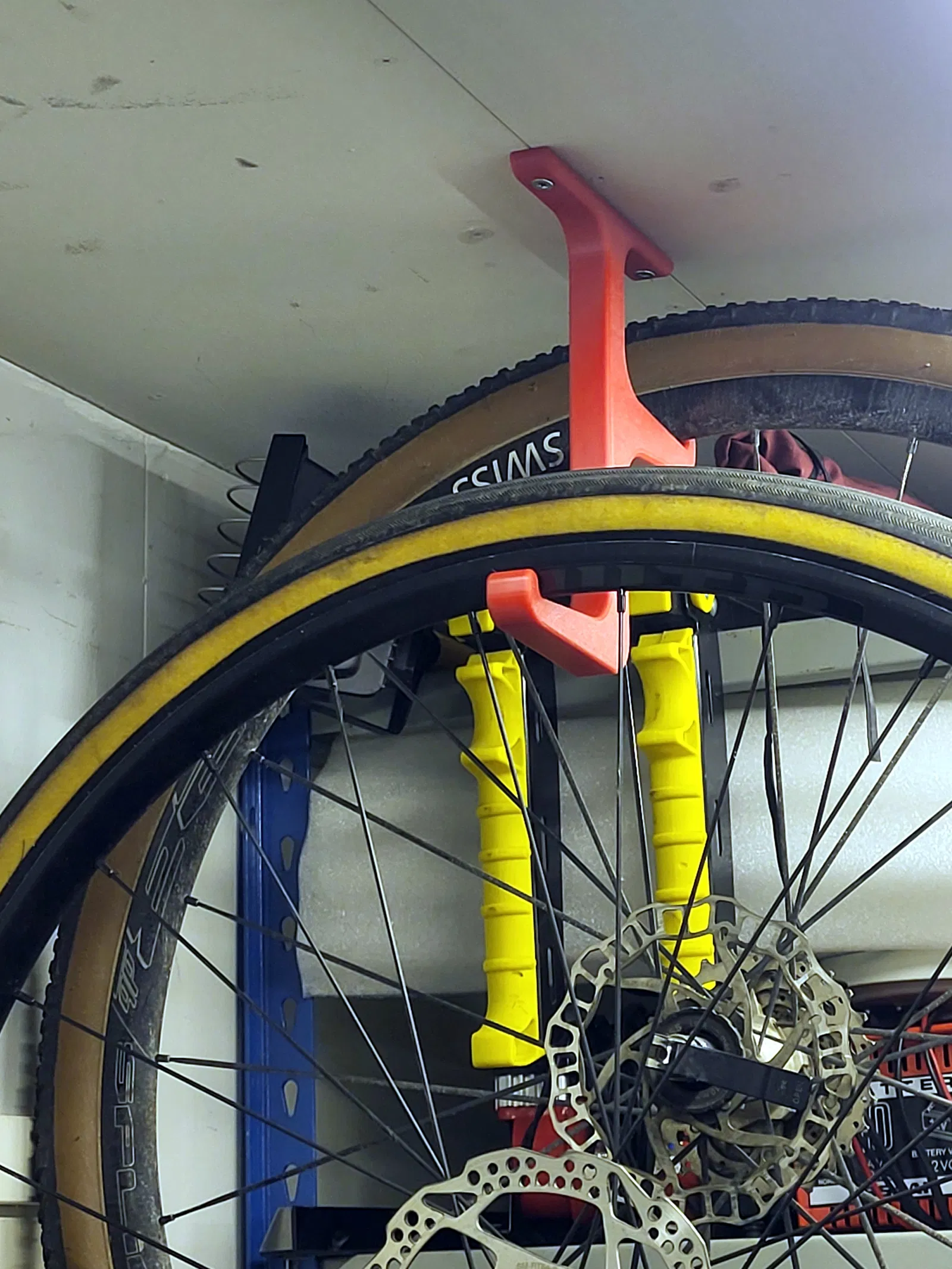 Dùng để treo bánh xe đạp, với thiết kế móc không đối xứng giúp trục bánh xe không bị thẳng hàng. Lỗ ốc phù hợp với vít chìm 5.5mm. Có thể in bằng PLA hoặc PETG mà không cần vật liệu hỗ trợ.
