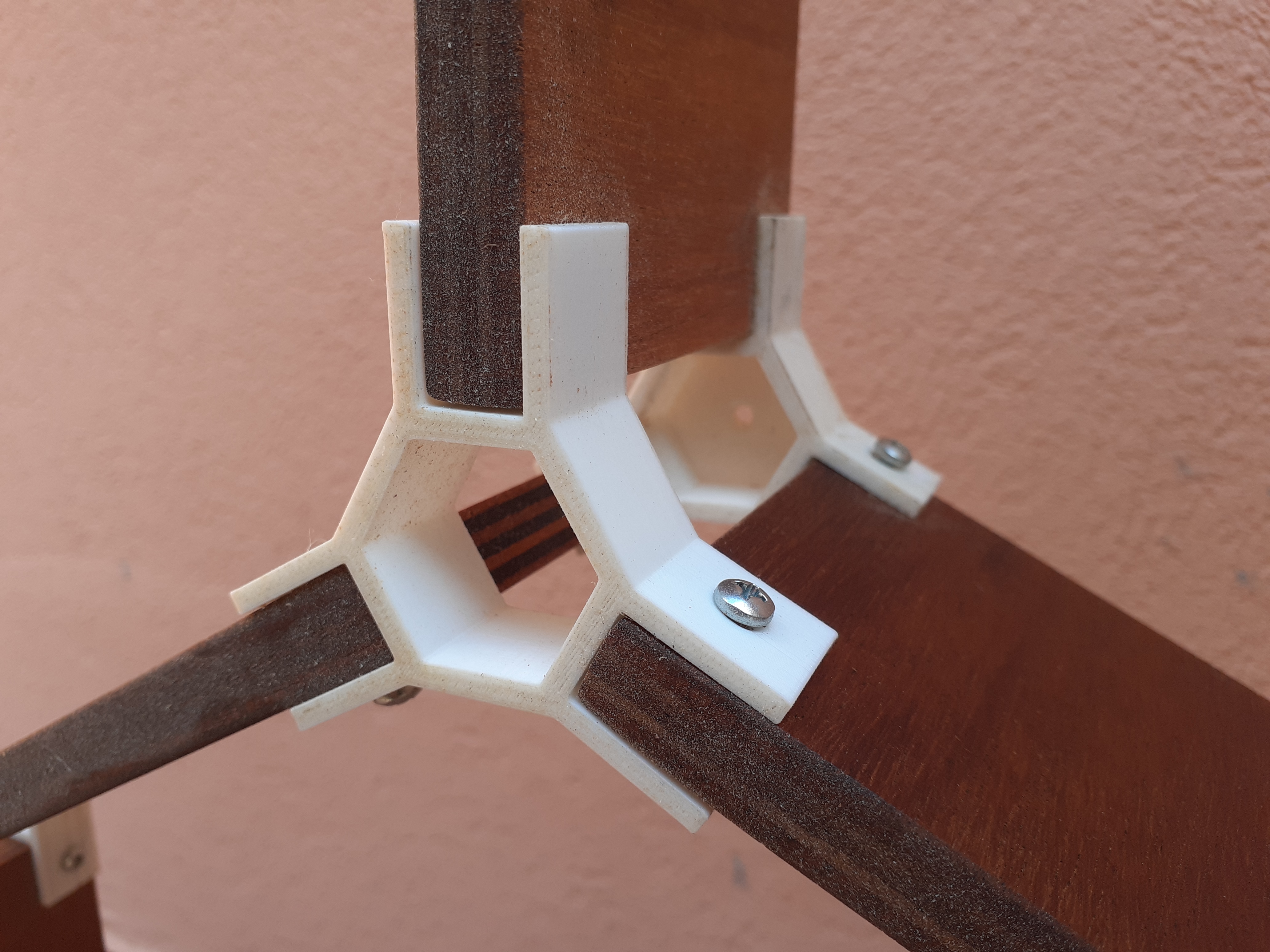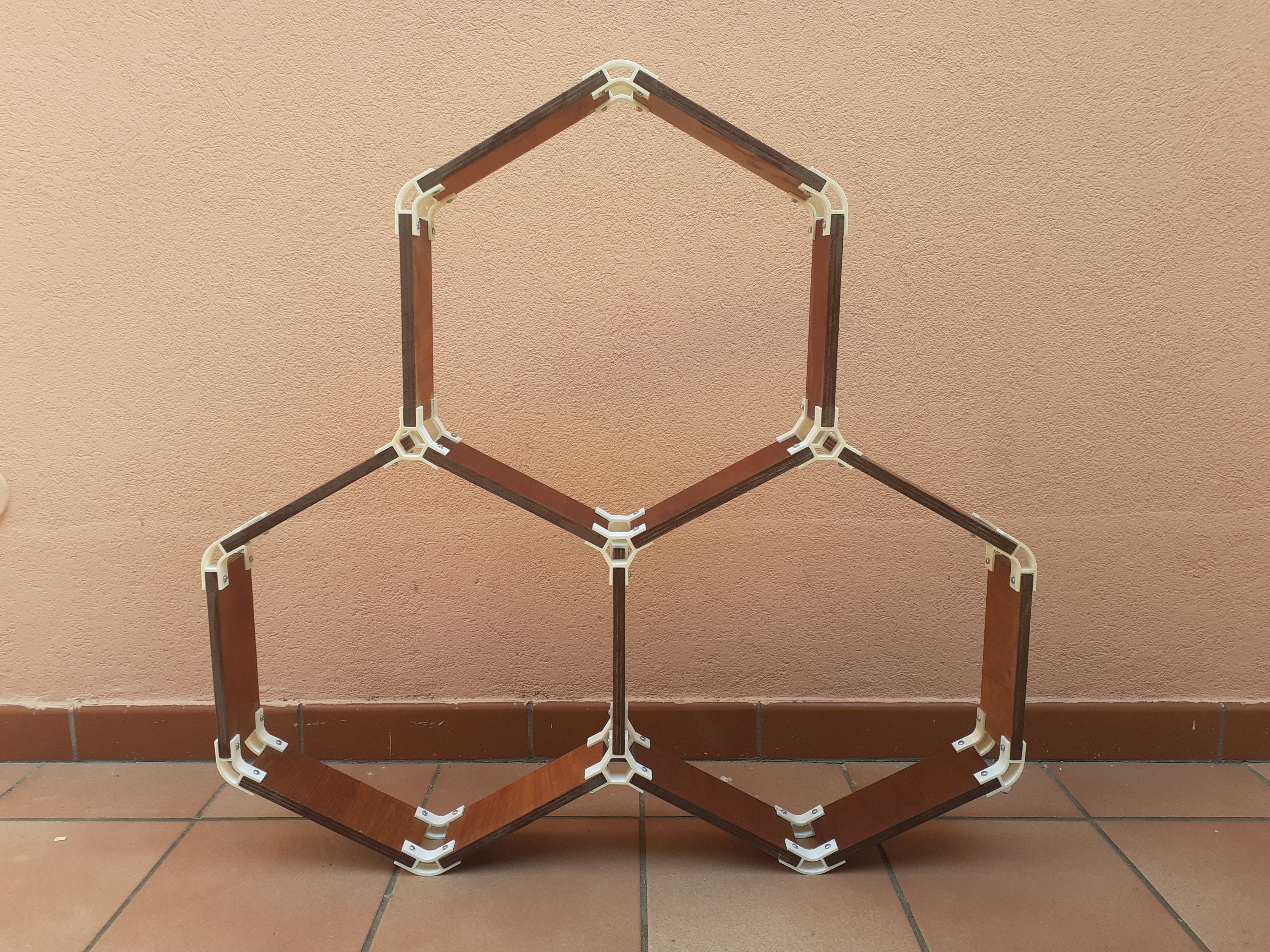 Khớp nối cho kệ trưng bày hình lục giác. Dùng với ván ép dày nửa inch (12.7 mm) hoặc MDF, OSB... Dễ dàng lắp ráp, tạo thành kệ lục giác chắc chắn.