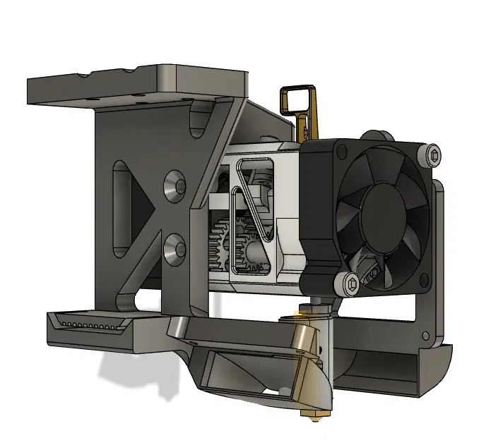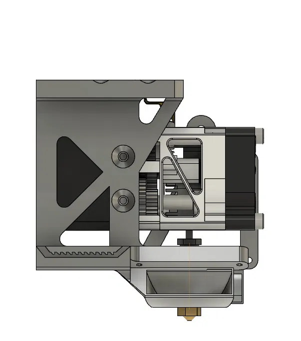 Nó gắn trên thanh nhôm 2040 với ray trượt tuyến tính MGN9H phía trên và dây đai thời gian phía dưới. Nó có một mặt bích mà tôi dùng để bắt vít vào một loại bo mạch đầu phun nào đó vì máy in của tôi dùng cáp dẹt. Nó có giá đỡ tích hợp cho quạt 4010 nhưng tôi đã thêm một giá đỡ đơn giản có ống dẫn nếu bạn cần thêm luồng không khí 360°. Nó nên được in theo hướng tệp được cung cấp, yêu cầu hỗ trợ tối thiểu, chỉ dành cho phần nhô ra của ống dẫn quạt tích hợp và cho các răng khóa dây đai.