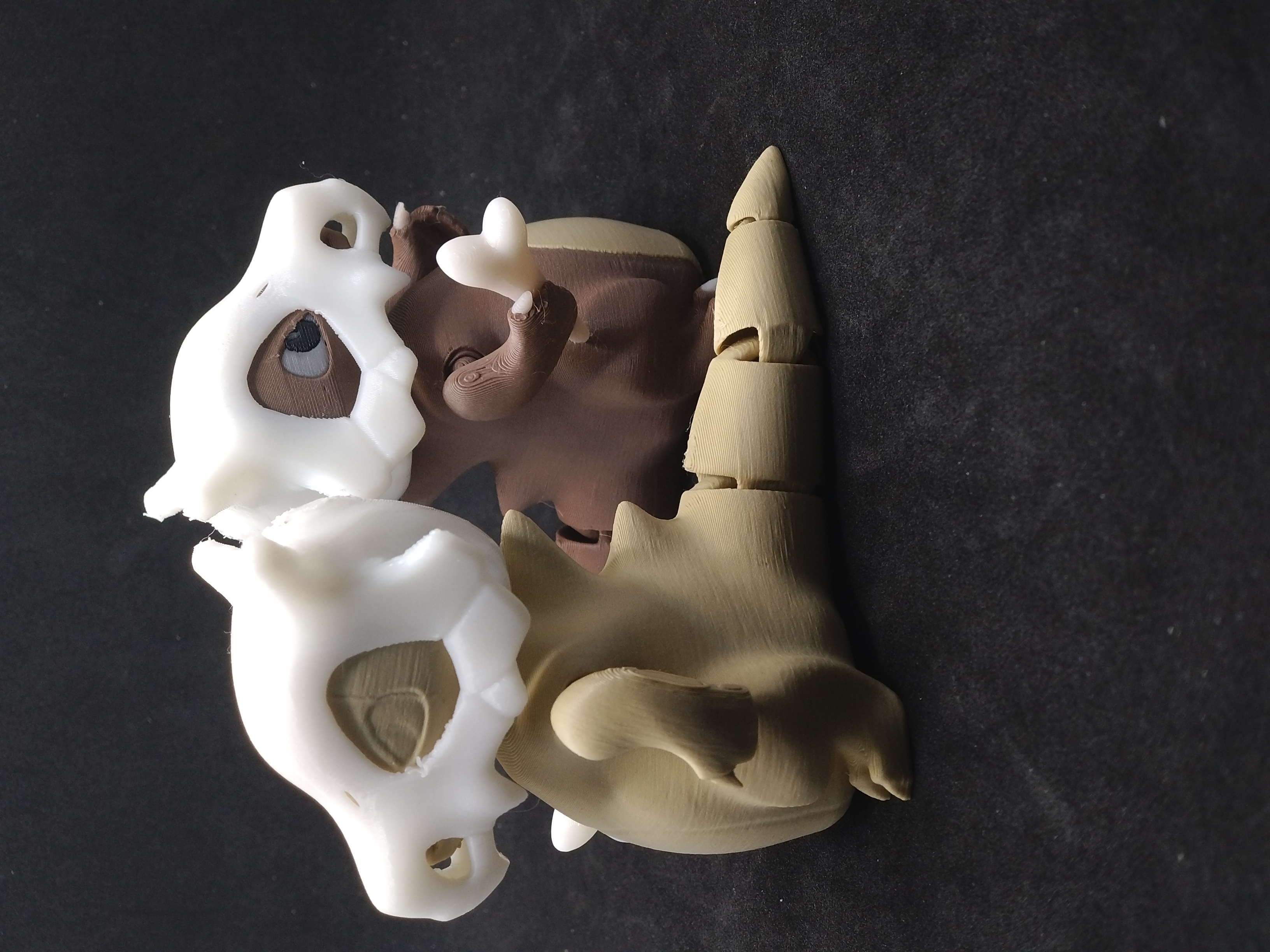 Phiên bản làm lại của đồ chơi Cubone này có khớp cầu cho tay và đầu, đuôi linh hoạt và mũ lỏng! Đã được thiết kế lại để khắc phục các vấn đề cũ, cải thiện khả năng đứng, khớp nối tốt hơn và mũ chất lượng cao hơn. Lưu ý về vật liệu in, support và brim.