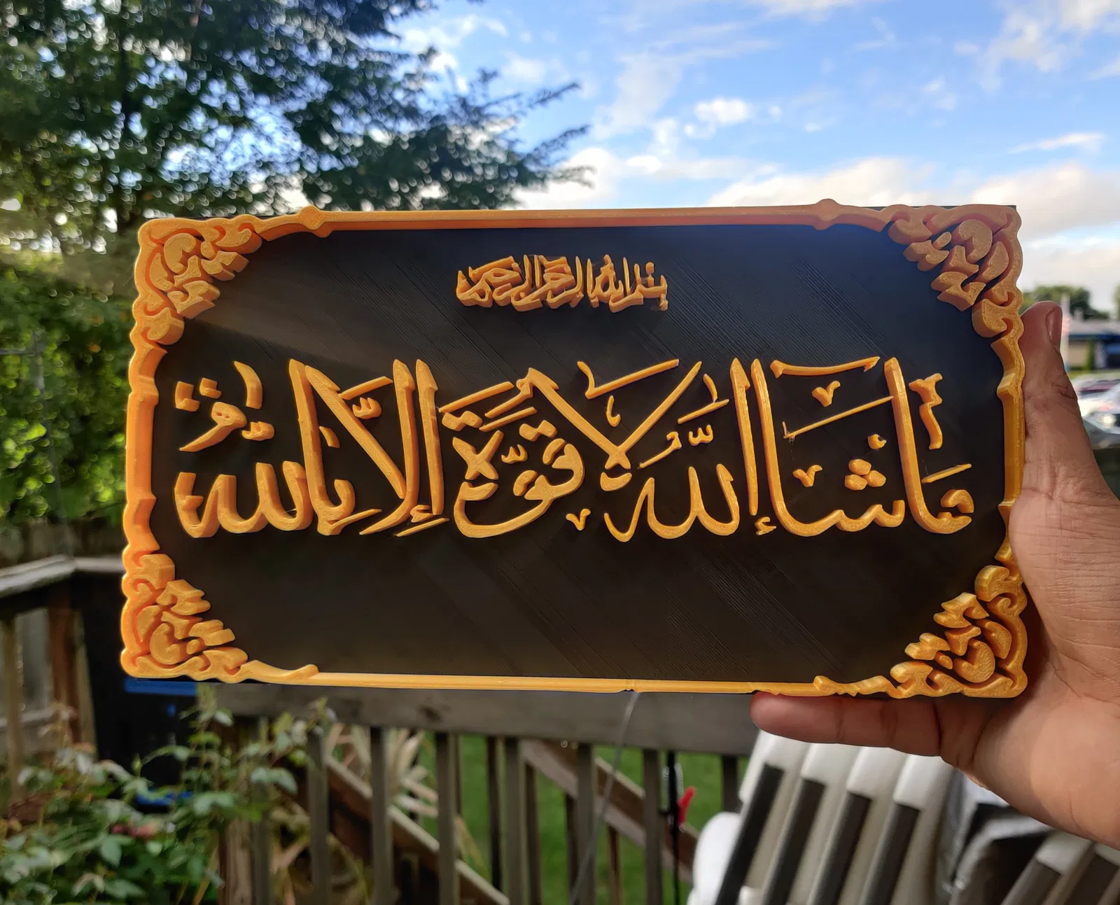 Câu này trong tiếng Ả Rập có nghĩa là: "Những gì Allah muốn! Không có sức mạnh nào ngoài Allah."