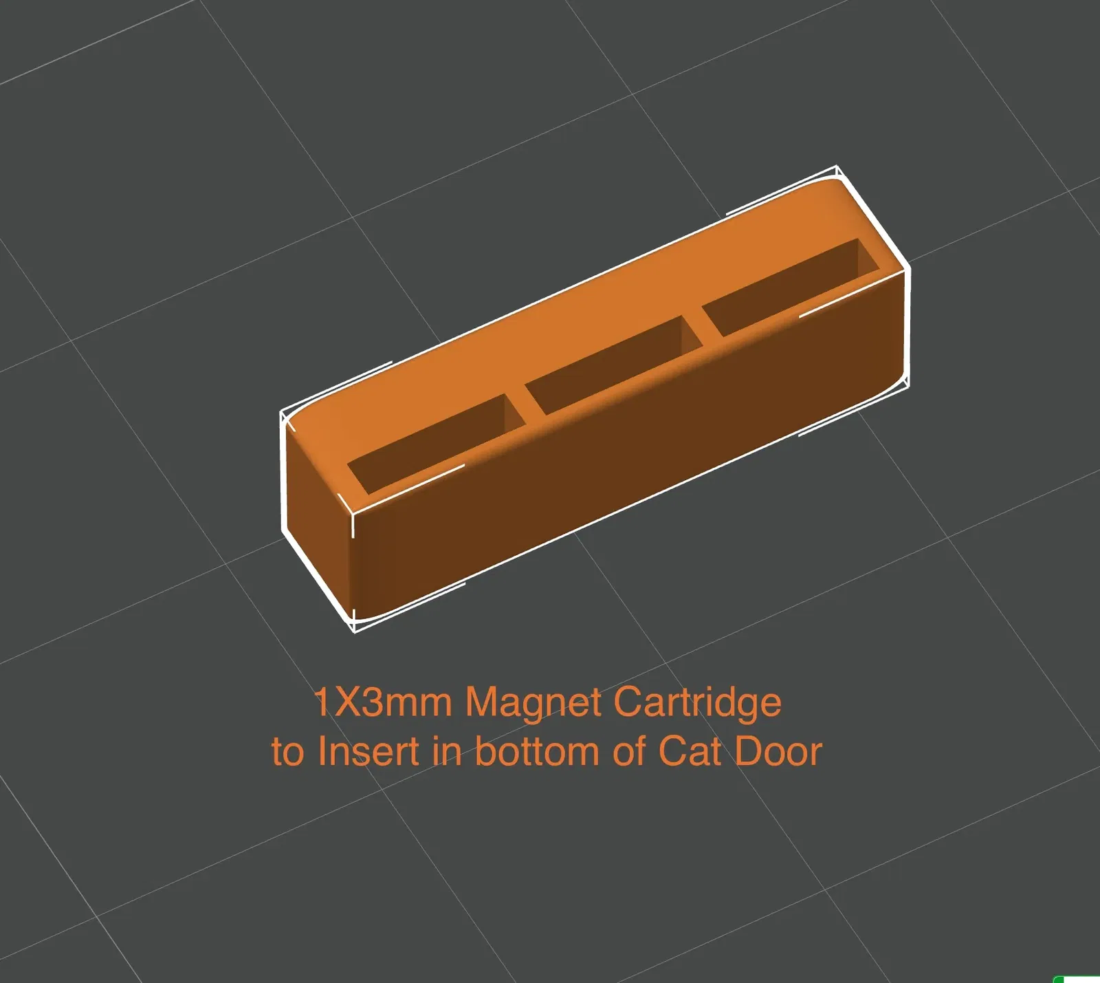 Cũng khuyến nghị sử dụng “Cartidge Nam Châm cho Cửa Mèo” để giữ Cửa Mèo ở vị trí đúng và ngăn gió thổi mở nó. IN 2, một cái cho cửa và một cái cho ngưỡng.