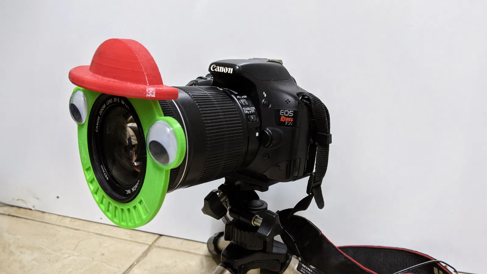 Đặt một khuôn mặt lên ống kính máy ảnh của bạn để nó cảm thấy bớt kỳ quặc khi nói chuyện với nó (cần 2 mắt lồi).