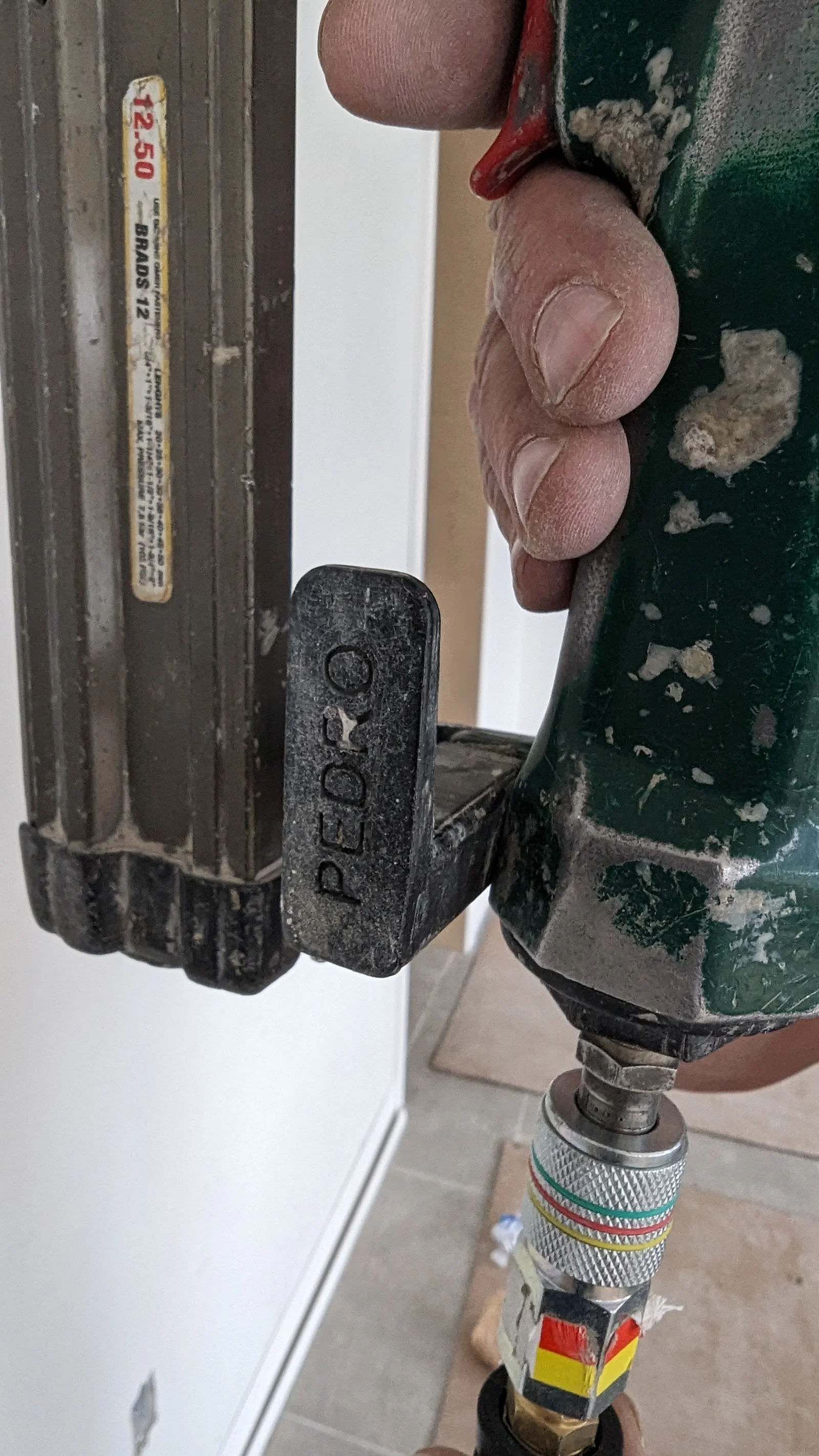 Giải pháp đơn giản để treo súng bắn đinh ghim. Có hai phiên bản: một cái dùng ốc M3, một cái dùng vít gỗ. Nên in với nhiều lớp tường để tăng độ bền.