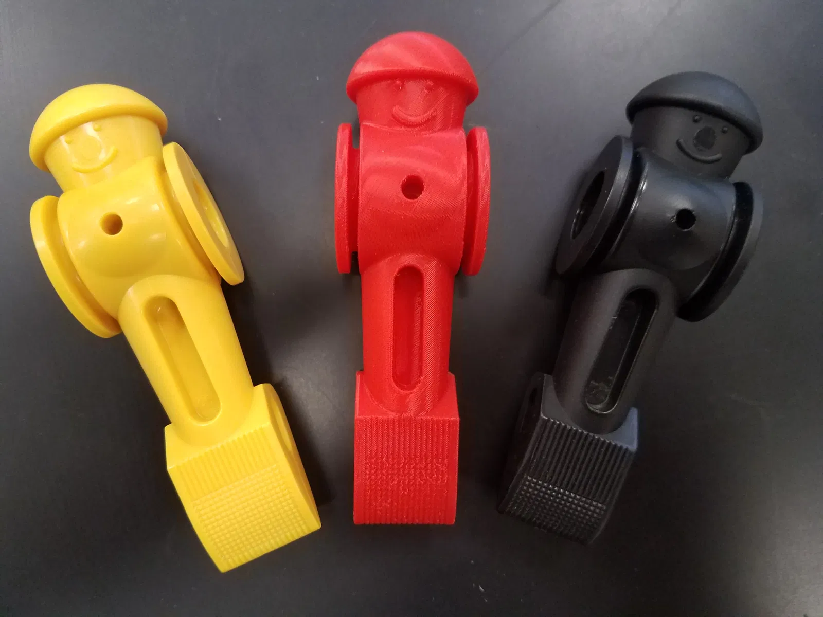 Một anh chàng thay thế cho bàn foosball, dựa trên bàn foosball hiệu Tornado. Nếu bạn định dùng cái này cho bàn foosball, hãy in với mật độ lưới (infill) cao và vật liệu bền. Mấy anh chàng này chịu đòn ghê lắm nha.