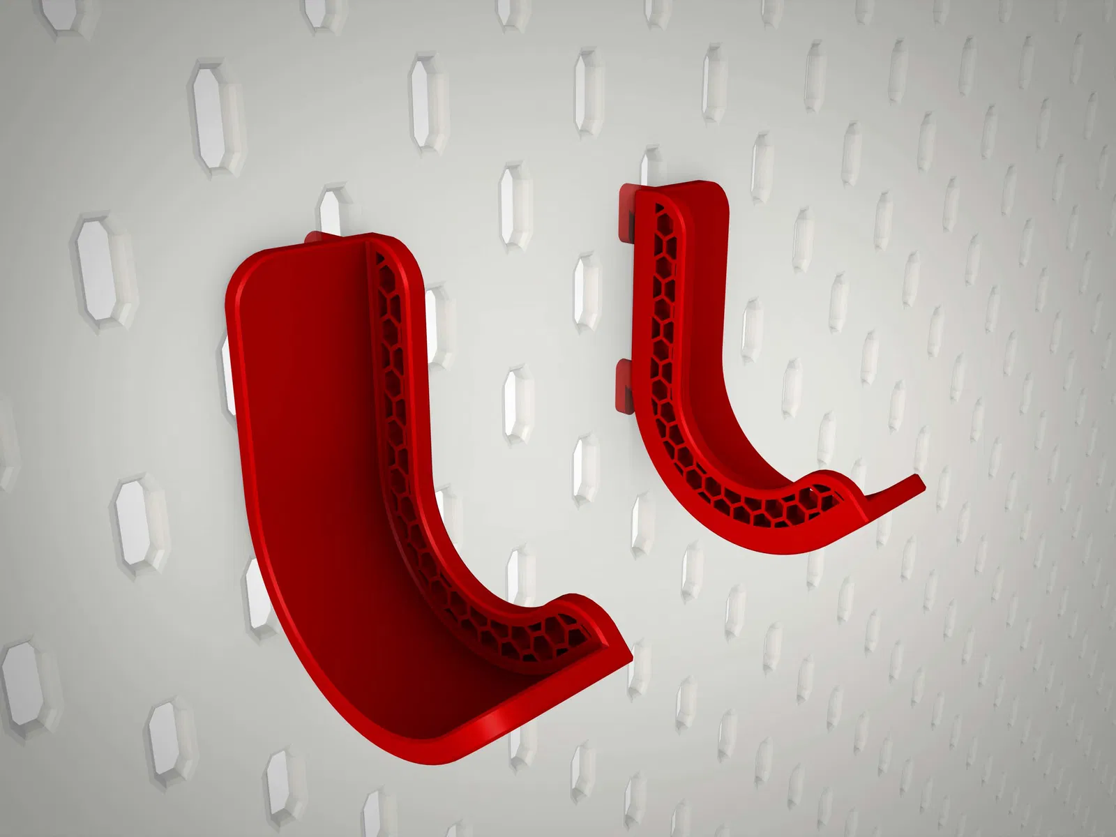 Móc treo 'hầm hố' để treo chiếc Traxxas TRX-4M 1/18 của bạn lên bảng treo đồ IKEA Skadis. Có thể dùng cho các loại xe crawler/rc khác. Thiết kế cho bánh xe cao 56mm, khoảng cách thành bánh 75mm.