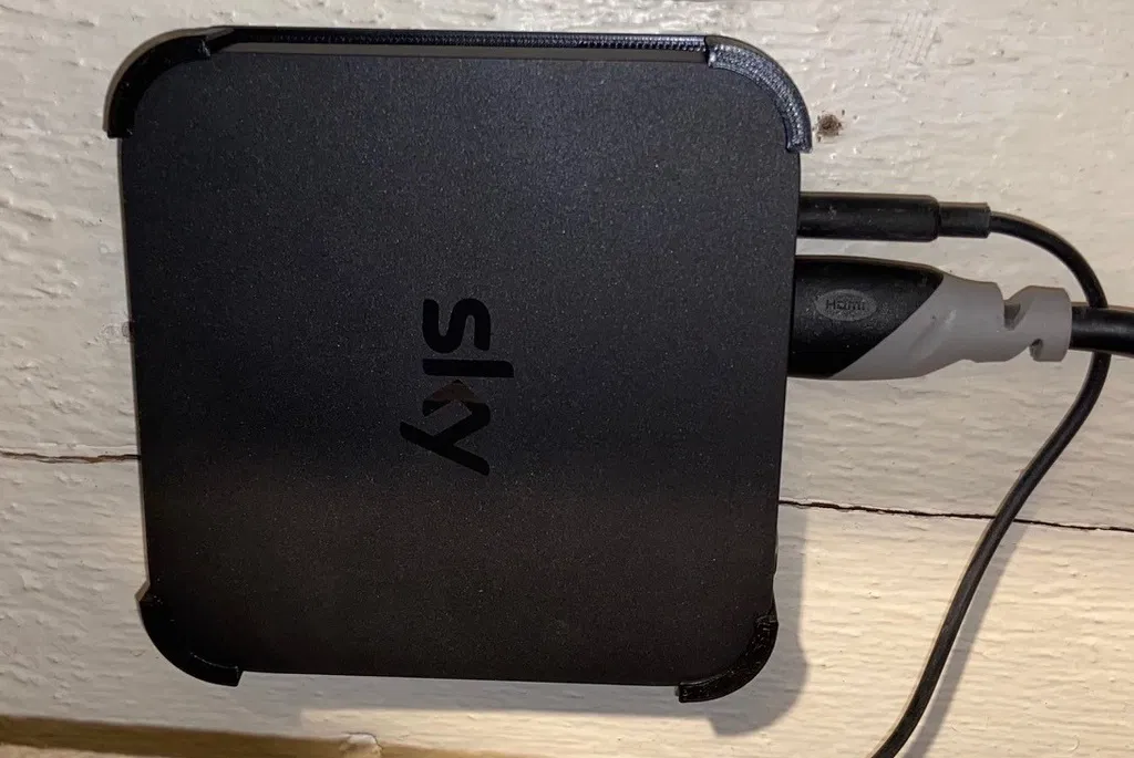 Hộp Sky Puck không có đế treo tường. Cần một giá treo dễ gắn/tháo, cho phép tiếp cận ổ cắm. Đế có thể co giãn ở góc, gắn bằng 2 ốc. In không cần support. Có file STL, có thể tùy chỉnh bằng OpenSCAD cho hộp vuông hoặc chữ nhật khác.