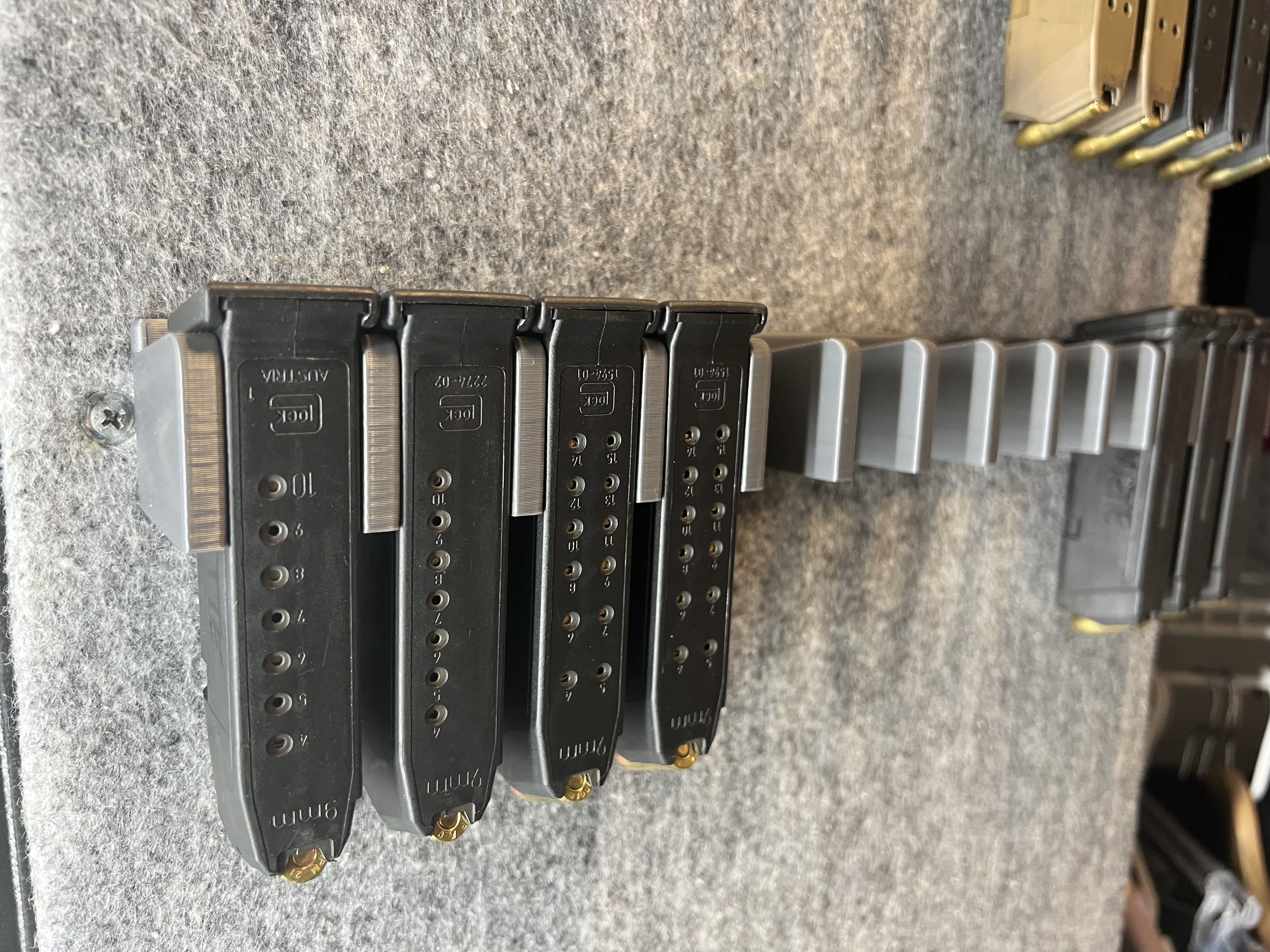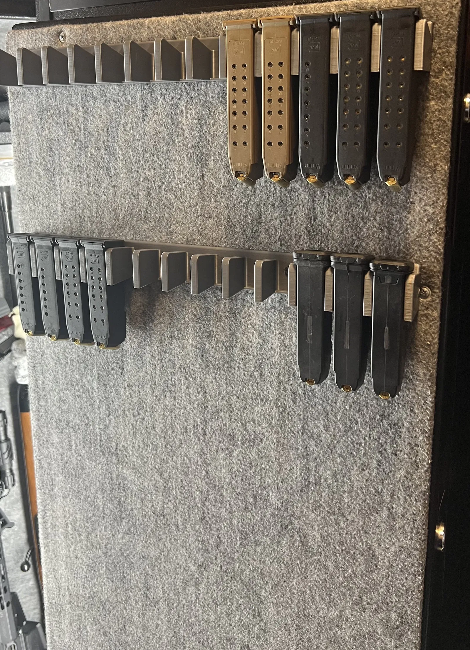 Tối ưu hóa không gian lưu trữ băng đạn Glock 17, 19, 43x của bạn với giá đỡ treo tường hoặc để trong két an toàn. Dễ dàng lắp đặt, giữ chắc chắn và cho phép bạn nhanh chóng kiểm tra tình trạng băng đạn. Có nhiều tùy chọn kích thước cho số lượng băng đạn khác nhau.