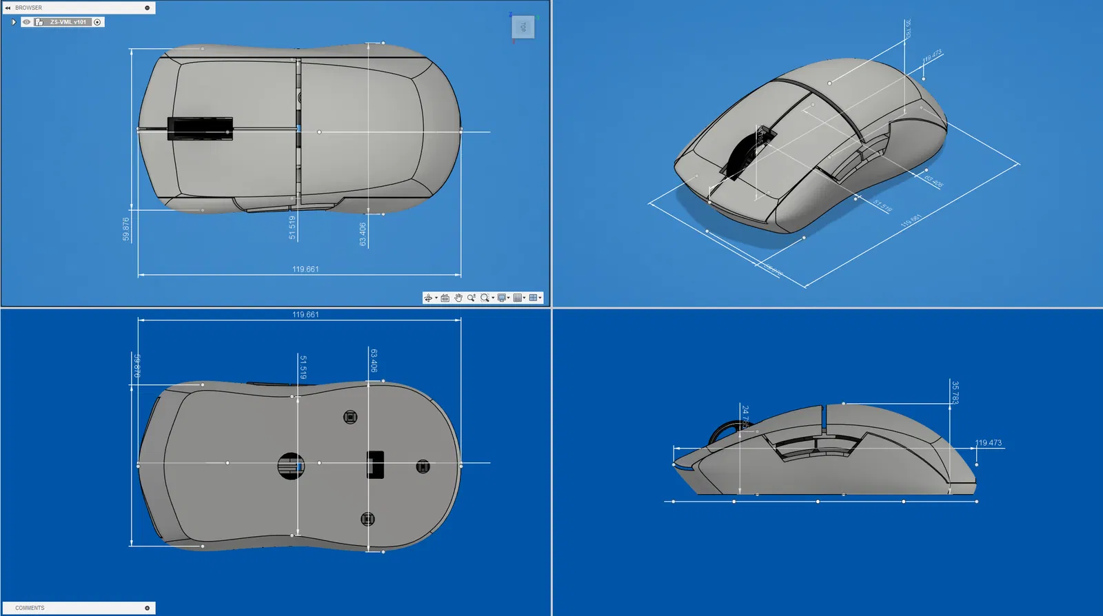 ZS-VML là mẫu chuột 3D đối xứng in FDM, lấy cảm hứng từ Razer Viper Mini, dùng bộ phận Logitech G305. Chuột có thiết kế lưng thấp, đầu cao, hai bên hông rộng hơn. File in đã có sẵn hỗ trợ và hướng dẫn lắp ráp chi tiết. Trọng lượng nhẹ, không cần hàn.
