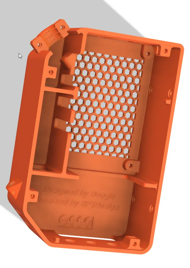 Đây là bản remix mới của chiếc Big Einsy Case với hoa văn tổ ong độc đáo, được thiết kế để đi cùng với phần nắp đã được làm lại. Bản remix này còn cải tiến lỗ luồn dây nylon sâu hơn và thêm chốt giữ ống dây, loại bỏ nhu cầu dùng dây rút. Vẫn giữ nguyên danh sách vật tư gốc, chỉ cần thêm 2 ốc M3 25mm.