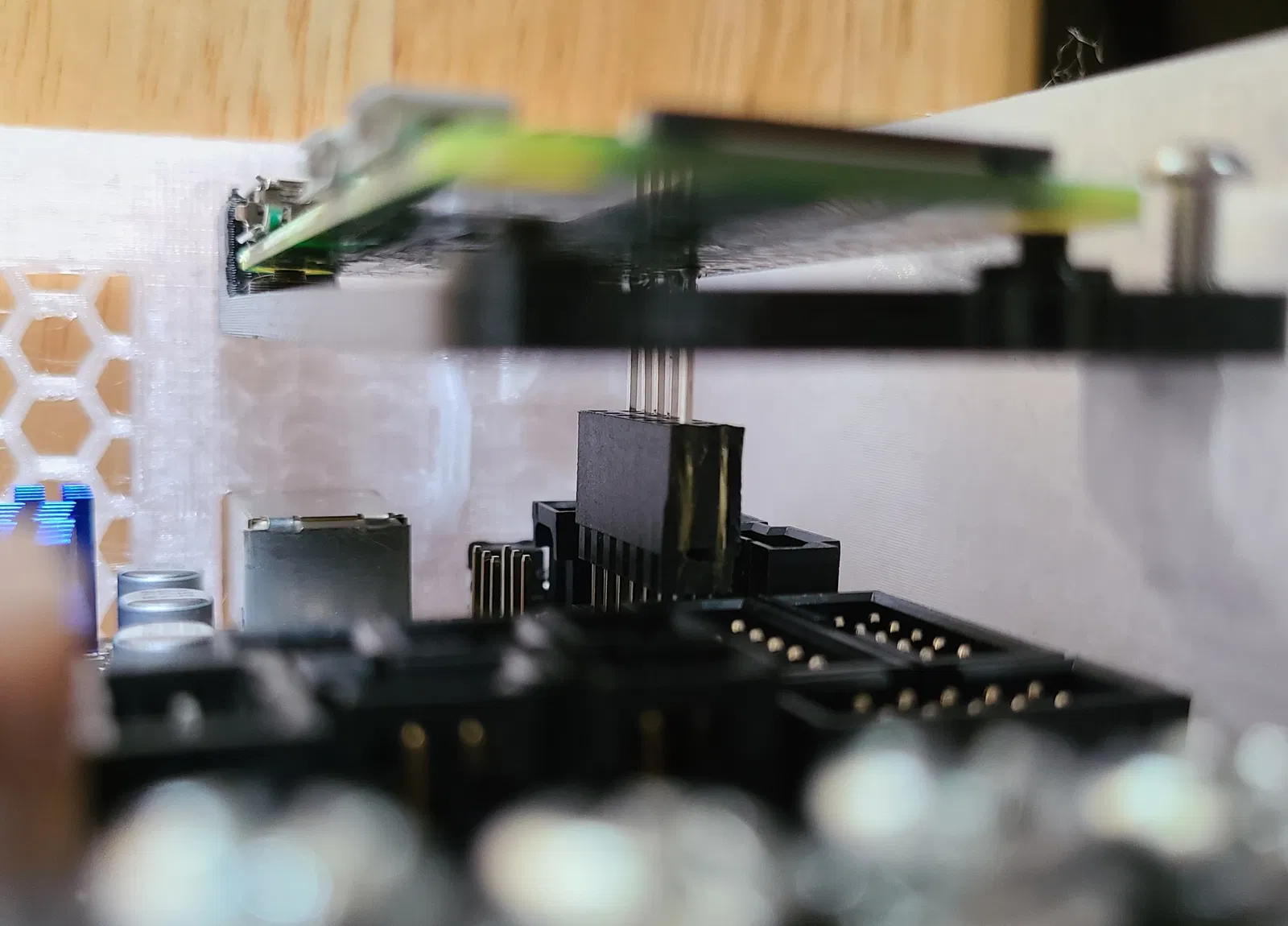 Tui thực sự thích cái vỏ Big Einsy của Boogie, cộng với bản remix của BF3Design, và cái này chỉ là một bản chỉnh sửa nhỏ thôi, nhưng với RPi Zero W 2 thì nó tạo ra sự khác biệt lớn! Bằng cách luồn dây cáp ruy băng màn hình LCD dọc theo phía bên phải của hộp, bạn có thể gắn RPi Zero vào mặt trước của bo mạch Einsy. Điều này tạo không gian để gắn tản nhiệt cho RPi, cho phép truy cập vào thẻ microSD của RPi, đầu nối webcam và các đầu nối USB, đồng thời bạn có thể nhìn thấy đèn LED trạng thái của RPi. Có một vài điểm neo dây rút ở những vị trí chiến lược để hỗ trợ quản lý cáp và tránh dây lủng lẳng. Quan trọng nhất là ở đỉnh vỏ để giữ dây PINDA. Cần phải lắc nhẹ một chút nhưng bo mạch Einsy có thể lọt qua dây rút này và giá đỡ dây cáp ruy băng. Kết nối GPIO trên bo mạch Einsy cần được nối dài. Tui đã sử dụng "2x20-pin Extra Tall Female Stacking Header 0.1" cho Raspberry Pi" nhưng cắt nó thành 2x7 pin, xem ảnh để biết cách lắp đặt. Vỏ đựng RPi cần (1) ốc đầu socket M2.5x8 cho bên trong vỏ và (1) ốc đầu chìm M2.5x8 cho phía trên. Các ren được in sẵn trong vỏ đựng và hộp, nên việc vặn ốc vào hơi khó. Tui đã vặn chúng vào trước khi lắp ráp hộp để làm thông ren trước một chút. Tản nhiệt RPi nằm sát với nắp trước, nên tui đã sửa đổi nắp với một lỗ khoét, và thay đổi cách gắn quạt. Quạt 4010 vừa vặn với (2) ốc đầu chìm M3x20. Thay đổi này cũng cho phép in nắp mà không cần hỗ trợ, nhưng nó gồm ba phần. Tui đã in bằng Overture Clear PETG, 3 lớp chu vi và vỏ, 15% độ đặc gyroid. Nhìn trên ảnh không đẹp lắm, nhưng ngoài đời trông rất đẹp, và nó trong mờ nên dễ dàng nhìn thấy đèn LED. Danh sách vật tư (BOM) giống như của BF3Design. Bạn cần tải các tệp einsycase_cable_cover_1.stl và einsycase_cable_cover_2.stl từ mô hình gốc: Tui đã theo dõi nhiệt độ của RPi và với camera RPi và dây cáp ruy băng đi lên dưới nắp hộp, nhiệt độ đạt 60 C, sử dụng webcam thì khoảng 51 C, và chạy quạt làm mát xuống 36 C với nhiệt độ môi trường 18 C. Chỉnh sửa - Tui phát hiện ra lưới quạt gây ra tiếng rít cao. Tui đã thử nghiệm các lưới thay thế trên bản mod Bear của mình, bản mod này không có tản nhiệt trên RPi. Tui đã thiết kế các phiên bản thay thế "aero inlet" và "simple bezel" và ghi lại nhiệt độ RPi trong quá trình in. Lưới gốc có nhiệt độ cao nhất là 35.9 C, với viền là 34.3 C, không có tiếng ồn, và bản aero là 33.8 C và hơi có tiếng ồn. Tui đã bao gồm các tệp STL này, và tui hiện đang sử dụng viền đơn giản. Chỉnh sửa - Tui đã thêm một đế giữ cho pi có các lỗ để hỗ trợ kết nối gia tốc kế theo yêu cầu. Tui cũng đã bao gồm các tệp step và FreeCAD cho nó.