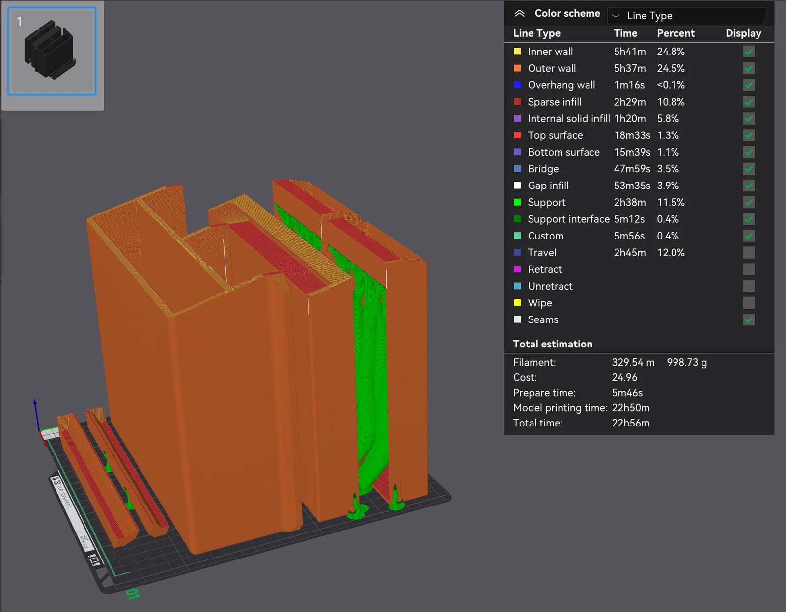 - Tôi khuyên bạn nên in các ngăn kéo đặt úp đáy với supports dạng cây (tree supports), hoặc đặt ngửa trên lưng. Cách nào cũng được, nhưng đặt úp đáy sẽ tốn ít vật liệu support hơn.