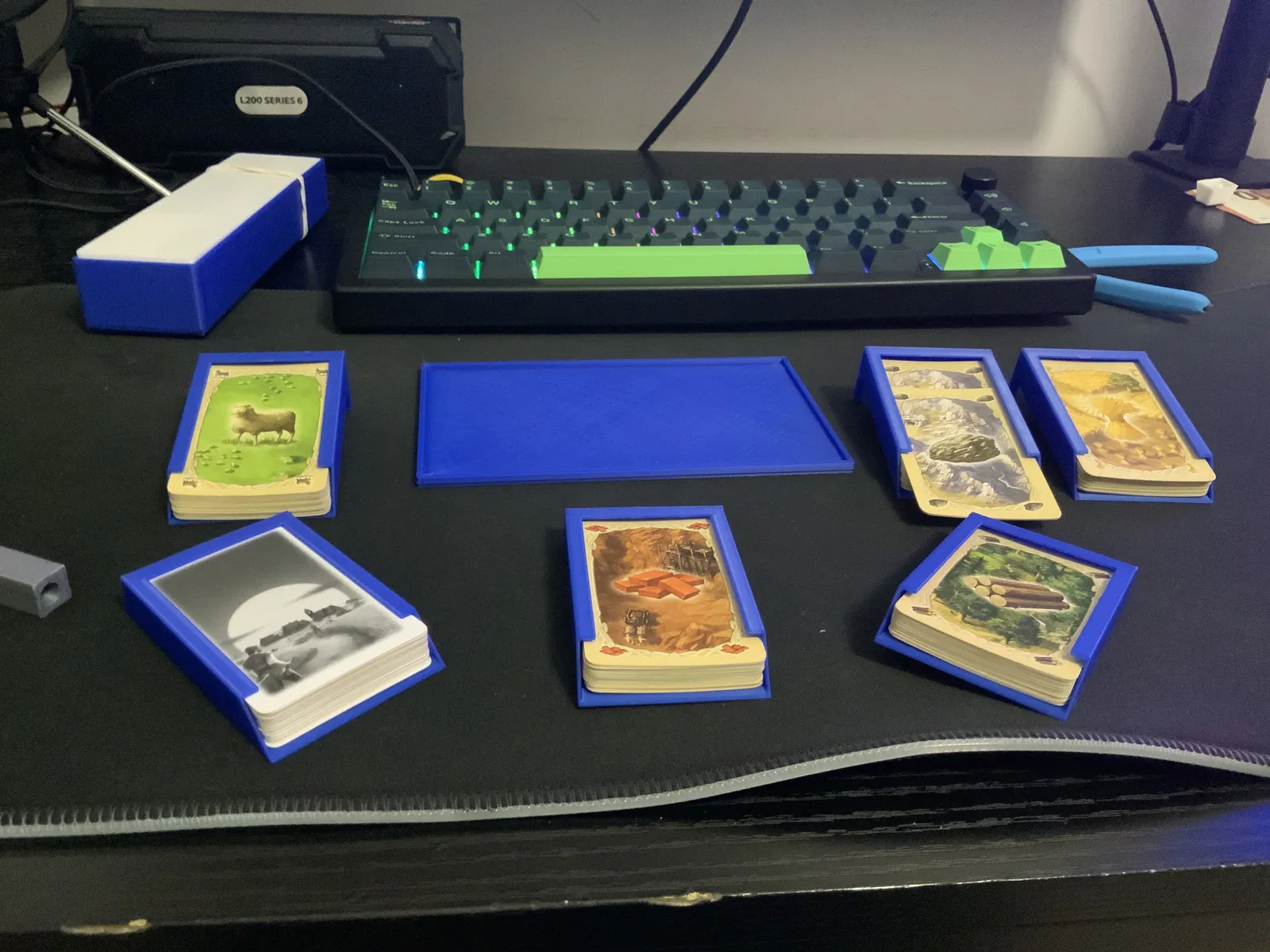 Mẫu hộp đựng và giữ thẻ bài Catan này giúp bạn giữ thẻ ngăn nắp khi chơi hoặc di chuyển, với chi phí thấp. In bằng PLA, chỉ tốn chưa tới 20g nhựa, phù hợp cho mọi người chơi Catan.