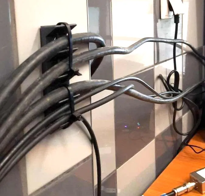 Sử dụng 2 tắc kê tường tùy theo kích thước bạn chọn (lỗ khoan rộng 6mm) để treo "Holder" lên tường, hoặc nếu cáp nhẹ thì bạn có thể dùng băng dính 2 mặt như loại 3M VHB hoặc tương tự.