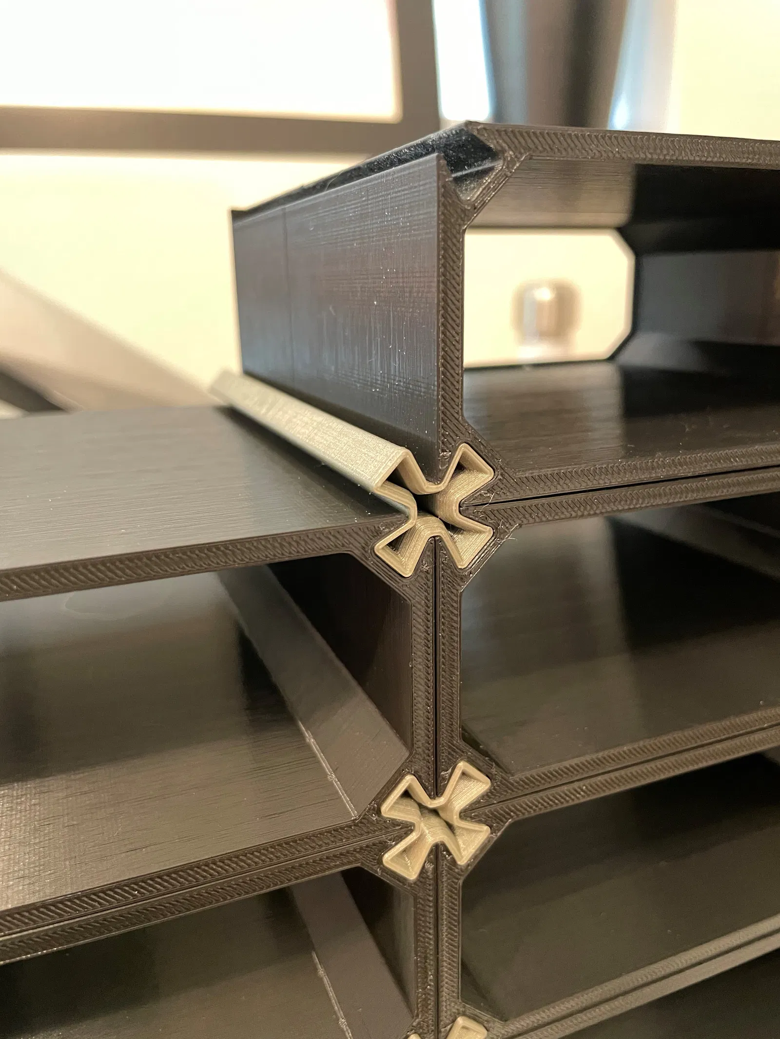 Module bao gồm một vỏ ngoài có các điểm kết nối ở mỗi góc, 3 loại đầu nối khác nhau cho các mặt trung tâm, góc và cạnh của chồng, cũng như 4 bố cục bên trong khác nhau cho các ngăn kéo mà bạn xếp chồng theo chiều ngang và chiều dọc để phù hợp hơn với không gian bạn có.